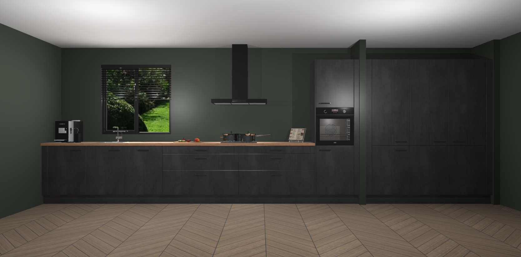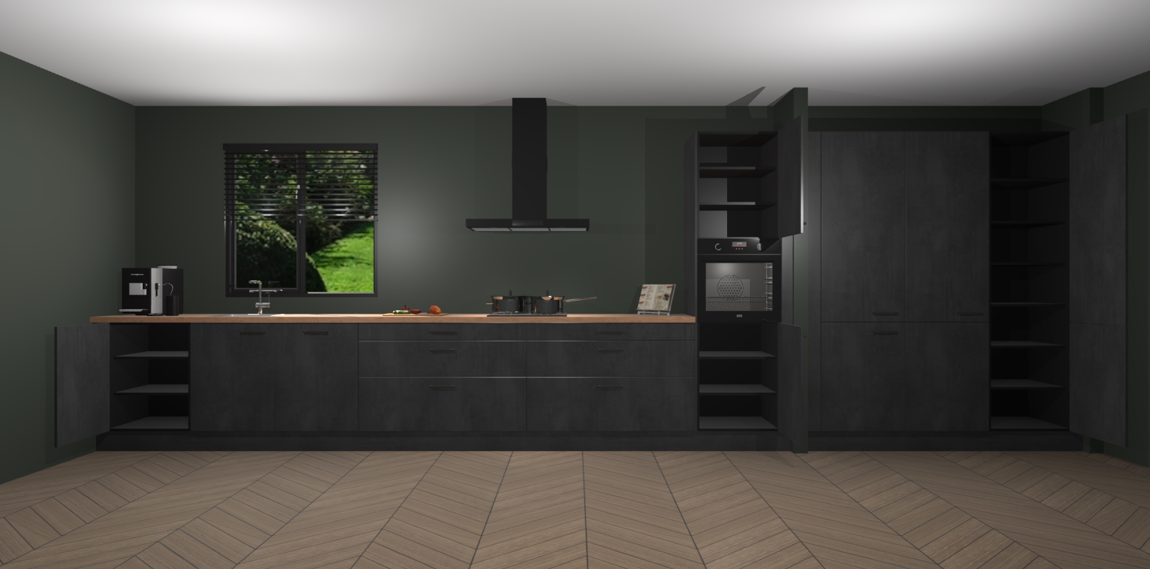 Dus waarom wachten? Maak indruk op uw gasten met een tijdloos chique Beton Zwarte keuken Angola! Dit luxueuze ontwerp zal zeker de aandacht trekken. Koop de uwe vandaag nog, zolang de voorraad strekt!