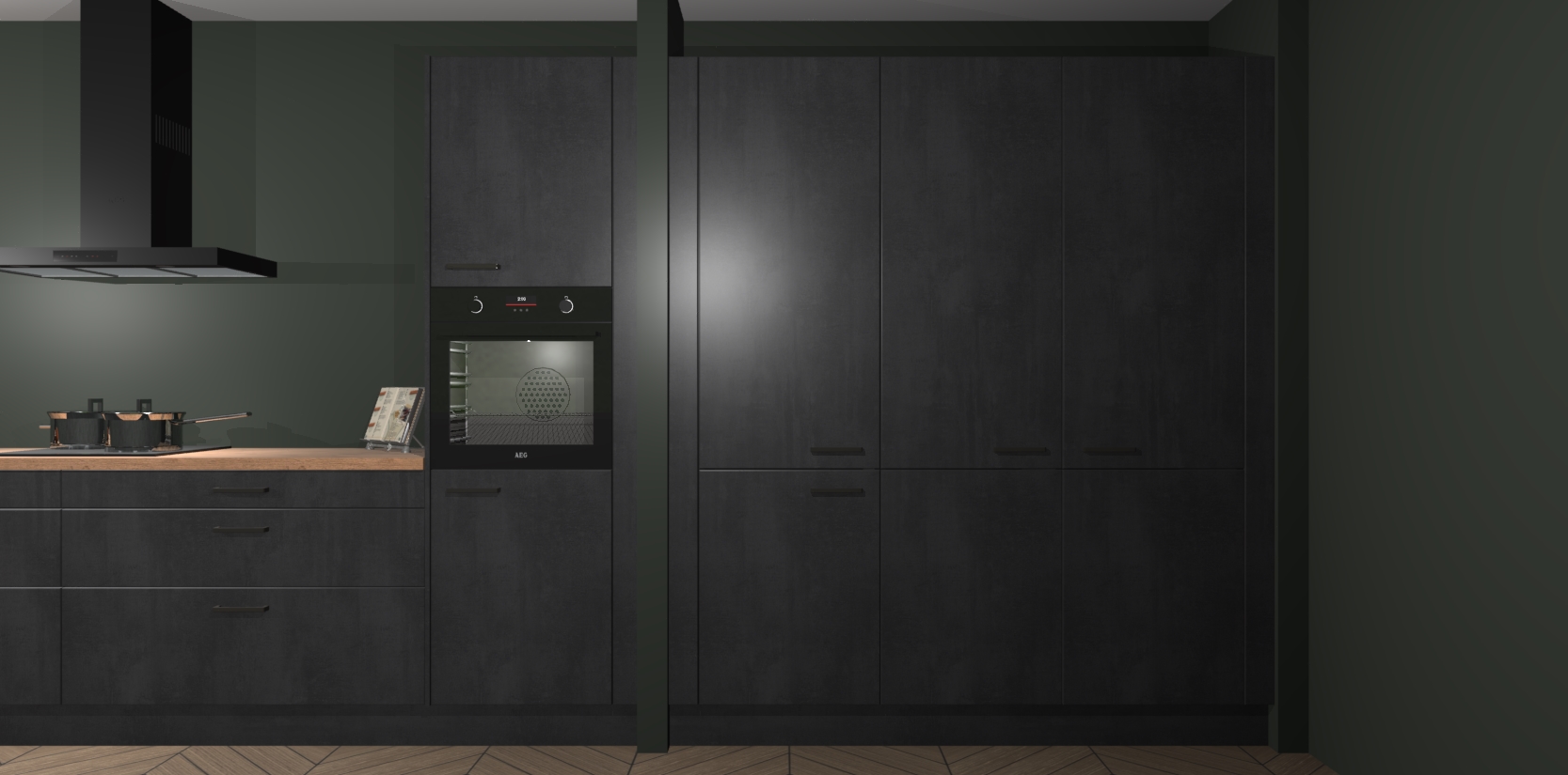 Dankzij de afwerking past de Beton Zwarte keuken Angola naadloos in elk huis of appartement. De soft-close deuren geven je extra gemoedsrust, want ze sluiten vanzelf en slaan nooit dicht! En alsof dat nog niet genoeg is, worden deze kasten volledig gemonteerd geleverd, dus maak je geen zorgen over eventuele installatieproblemen.