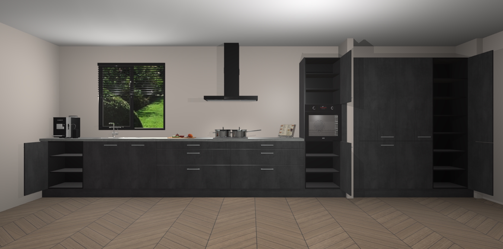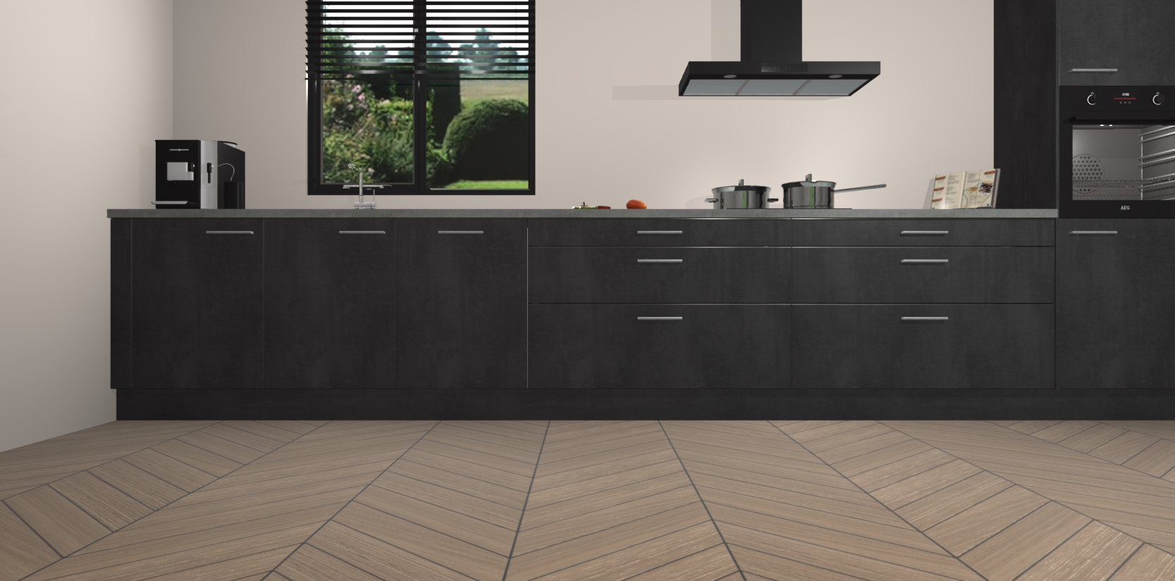 Dankzij de afwerking past de Beton Zwarte keuken Angola naadloos in elk huis of appartement. De soft-close deuren geven je extra gemoedsrust, want ze sluiten vanzelf en slaan nooit dicht! En alsof dat nog niet genoeg is, worden deze kasten volledig gemonteerd geleverd, dus maak je geen zorgen over eventuele installatieproblemen.