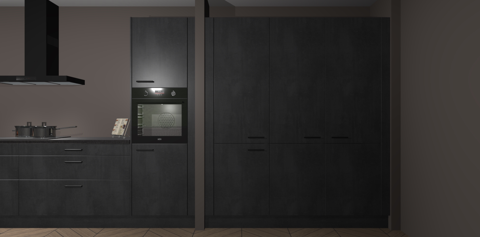 Dankzij de afwerking past de Beton Zwarte keuken Angola naadloos in elk huis of appartement. De soft-close deuren geven je extra gemoedsrust, want ze sluiten vanzelf en slaan nooit dicht! En alsof dat nog niet genoeg is, worden deze kasten volledig gemonteerd geleverd, dus maak je geen zorgen over eventuele installatieproblemen.