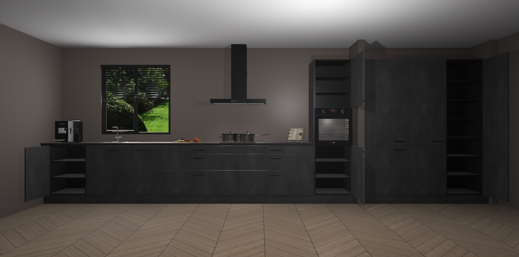 Dus waarom wachten? Maak indruk op uw gasten met een tijdloos chique Beton Zwarte keuken Angola! Dit luxueuze ontwerp zal zeker de aandacht trekken. Koop de uwe vandaag nog, zolang de voorraad strekt!