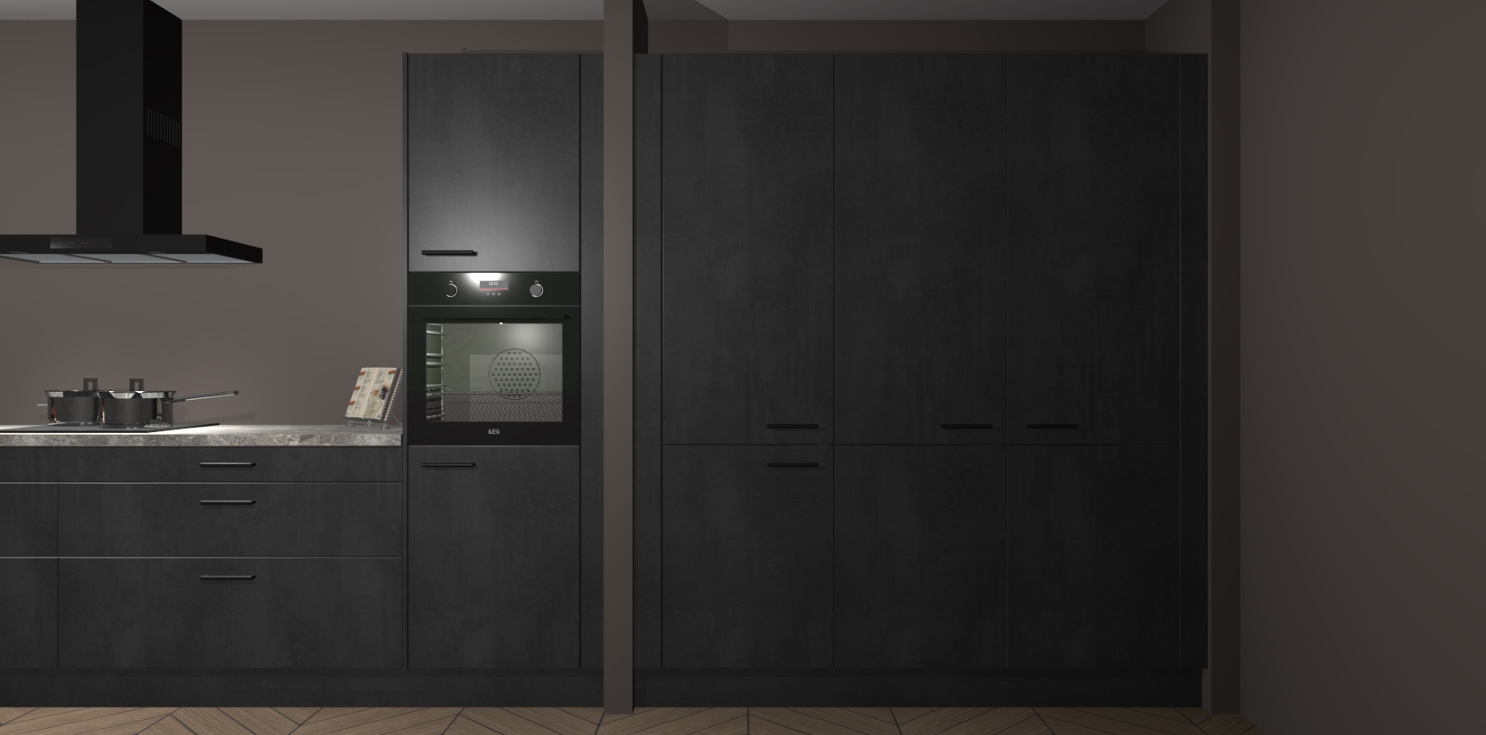 Dus waarom wachten? Maak indruk op uw gasten met een tijdloos chique Beton Zwarte keuken Angola! Dit luxueuze ontwerp zal zeker de aandacht trekken. Koop de uwe vandaag nog, zolang de voorraad strekt!