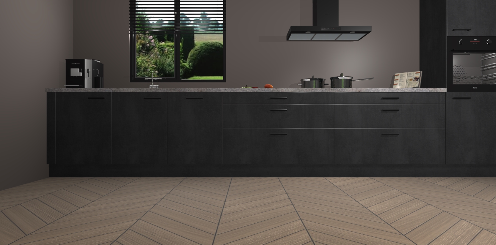 Dankzij de afwerking past de Beton Zwarte keuken Angola naadloos in elk huis of appartement. De soft-close deuren geven je extra gemoedsrust, want ze sluiten vanzelf en slaan nooit dicht! En alsof dat nog niet genoeg is, worden deze kasten volledig gemonteerd geleverd, dus maak je geen zorgen over eventuele installatieproblemen.