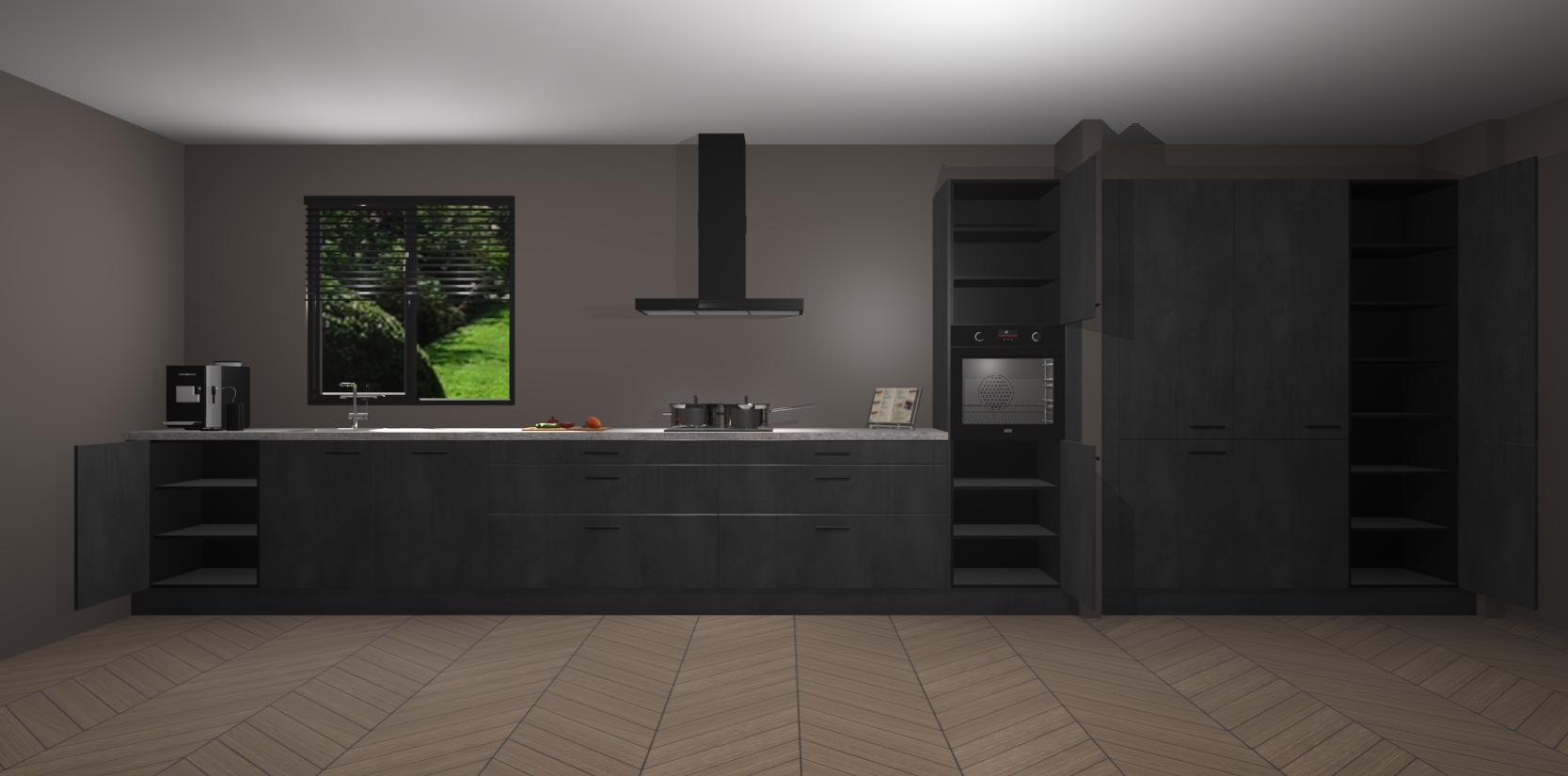 Dus waarom wachten? Maak indruk op uw gasten met een tijdloos chique Beton Zwarte keuken Angola! Dit luxueuze ontwerp zal zeker de aandacht trekken. Koop de uwe vandaag nog, zolang de voorraad strekt!