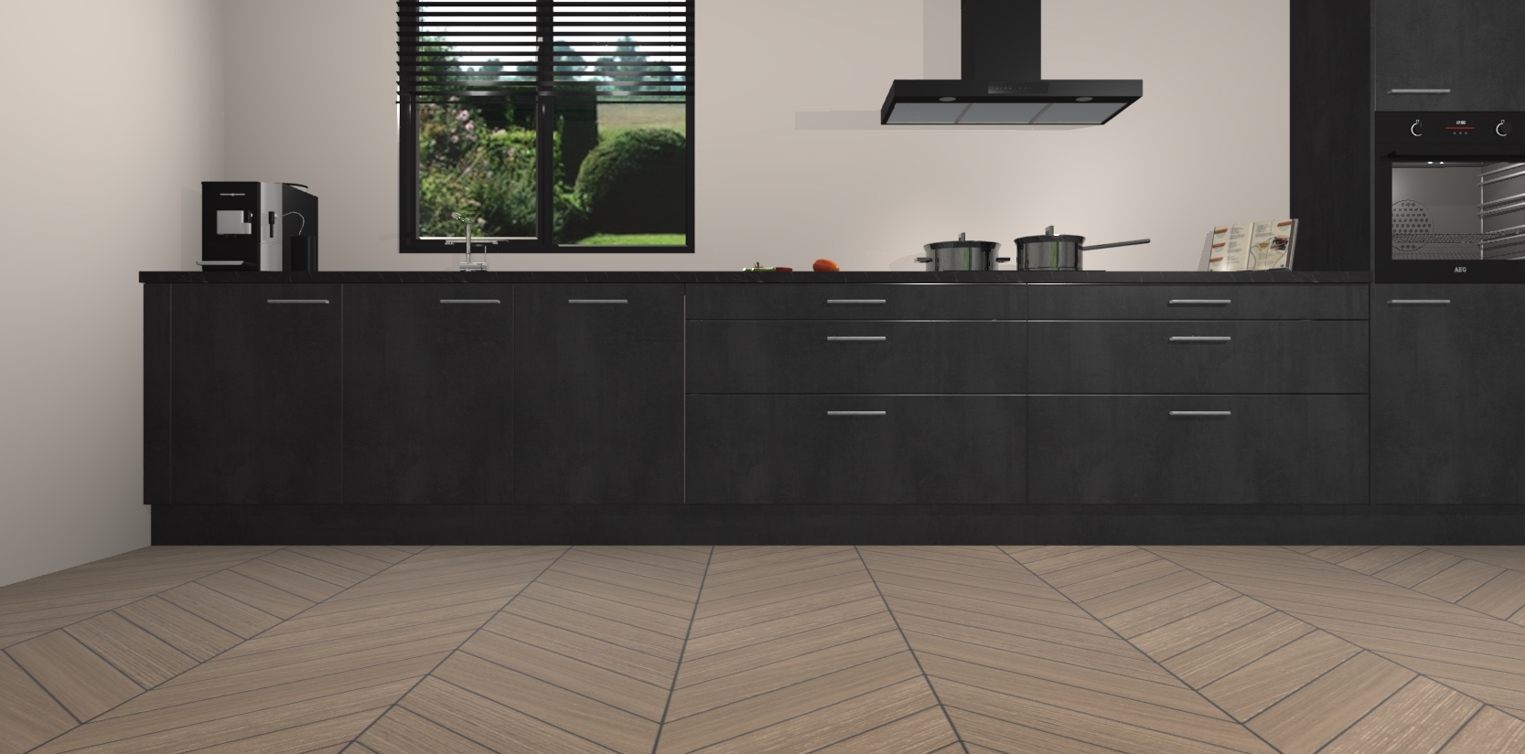 Dankzij de afwerking past de Beton Zwarte keuken Angola naadloos in elk huis of appartement. De soft-close deuren geven je extra gemoedsrust, want ze sluiten vanzelf en slaan nooit dicht! En alsof dat nog niet genoeg is, worden deze kasten volledig gemonteerd geleverd, dus maak je geen zorgen over eventuele installatieproblemen.
