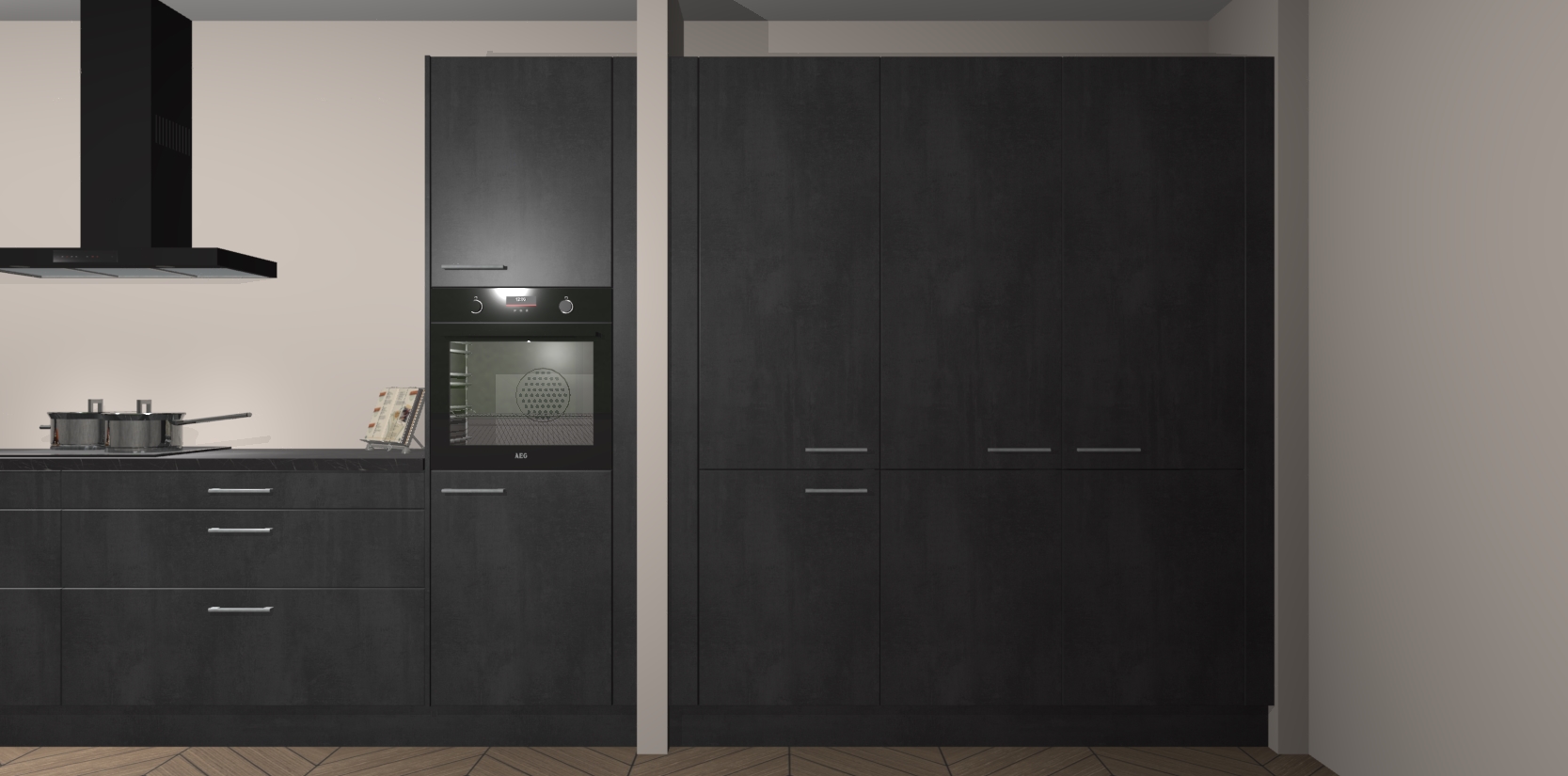 Dus waarom wachten? Maak indruk op uw gasten met een tijdloos chique Beton Zwarte keuken Angola! Dit luxueuze ontwerp zal zeker de aandacht trekken. Koop de uwe vandaag nog, zolang de voorraad strekt!