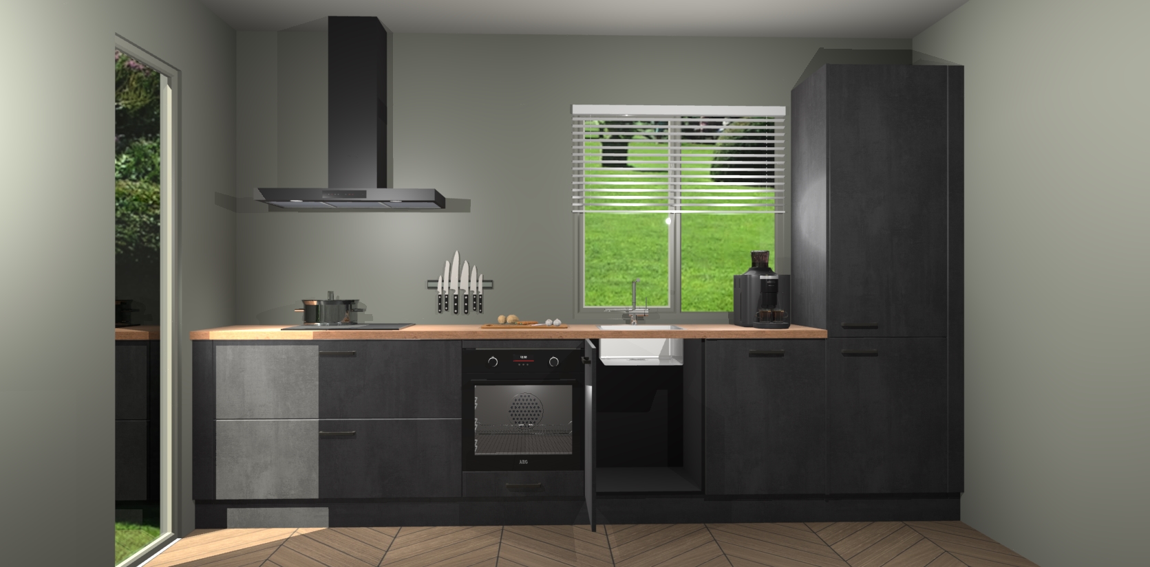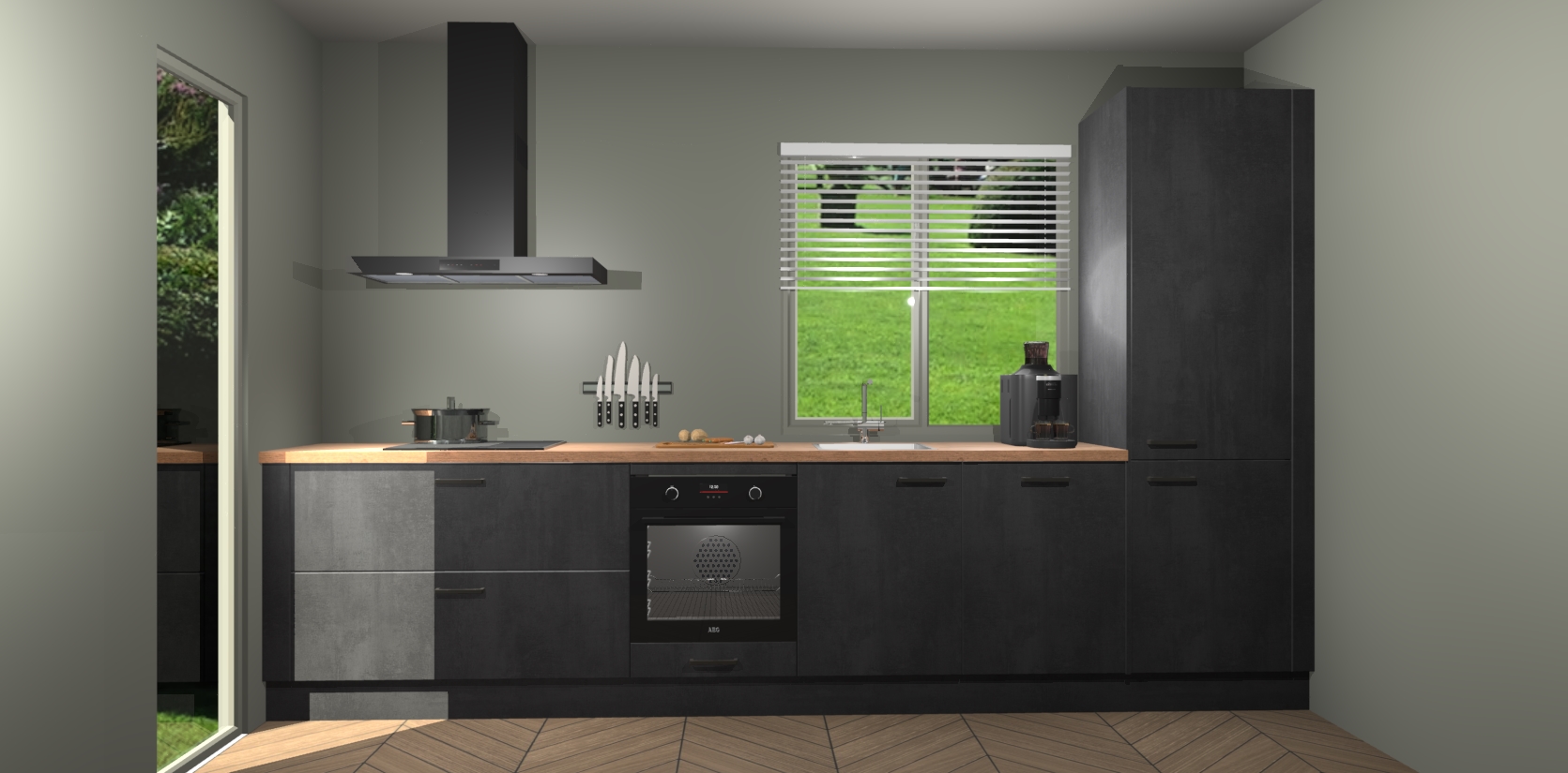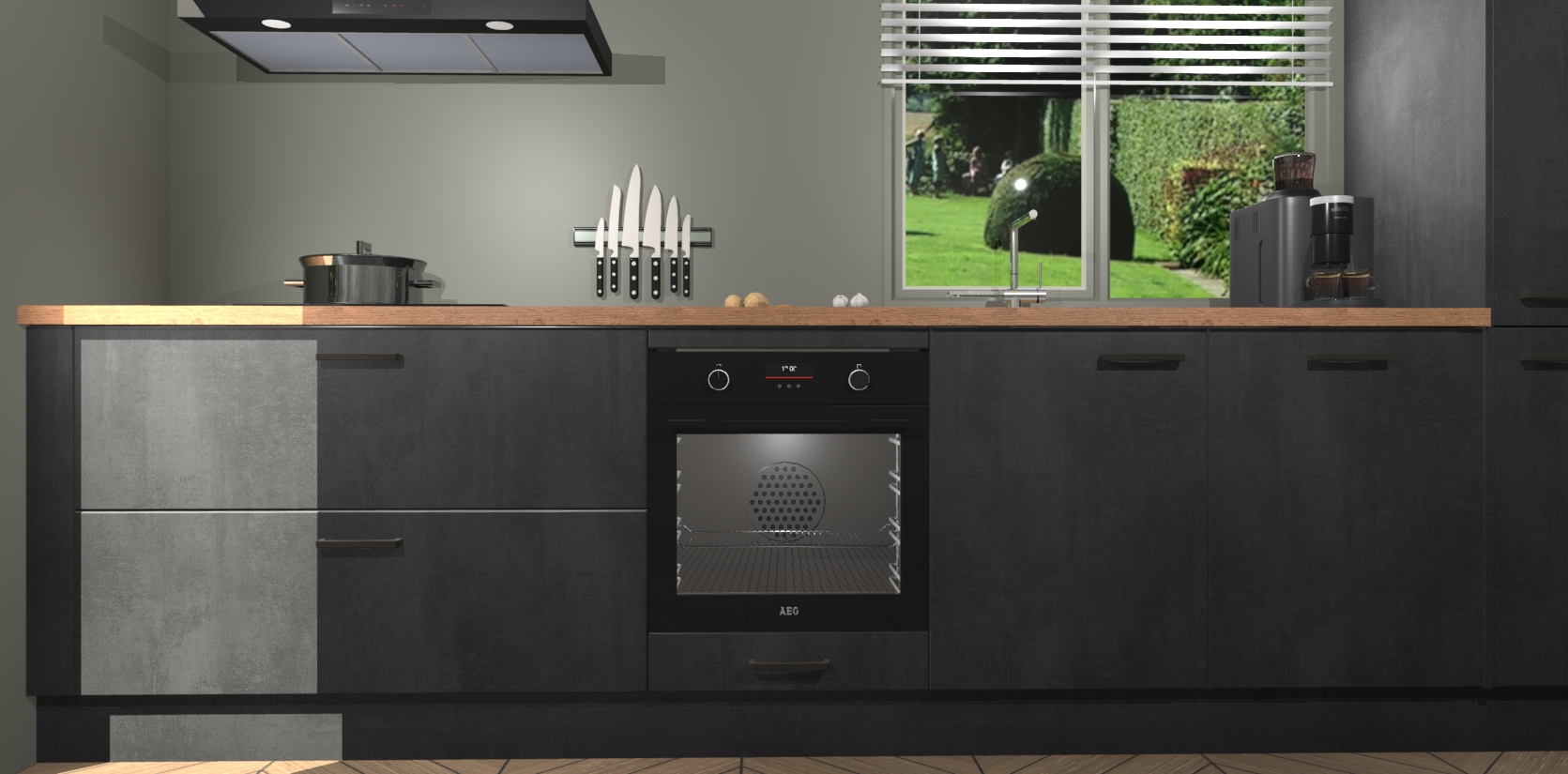 Maak kennis met de nieuwe Beton Zwarte keuken Antigua - een verbluffend, hoogwaardig keukenontwerp die uw ruimte gegarandeerd omtovert tot iets buitengewoons! Met zijn eigentijdse kastdeuren met luxueuze softclose systeem is de Beton Zwarte keuken Antigua de perfecte keuze voor iedereen die de look en feel van zijn leefruimte wil opwaarderen.