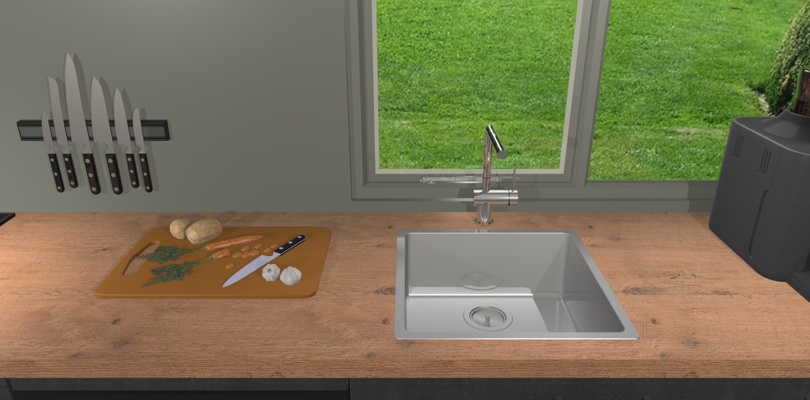 - De spoelbak is nog niet in gevreesd. Dit dient tijdens het werk gedaan te worden