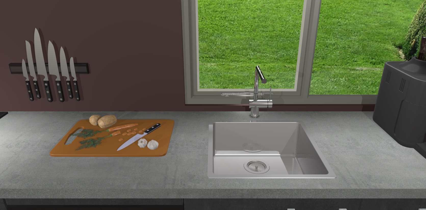 • De spoelbak is nog niet in gevreesd. Dit dient tijdens het werk gedaan te worden