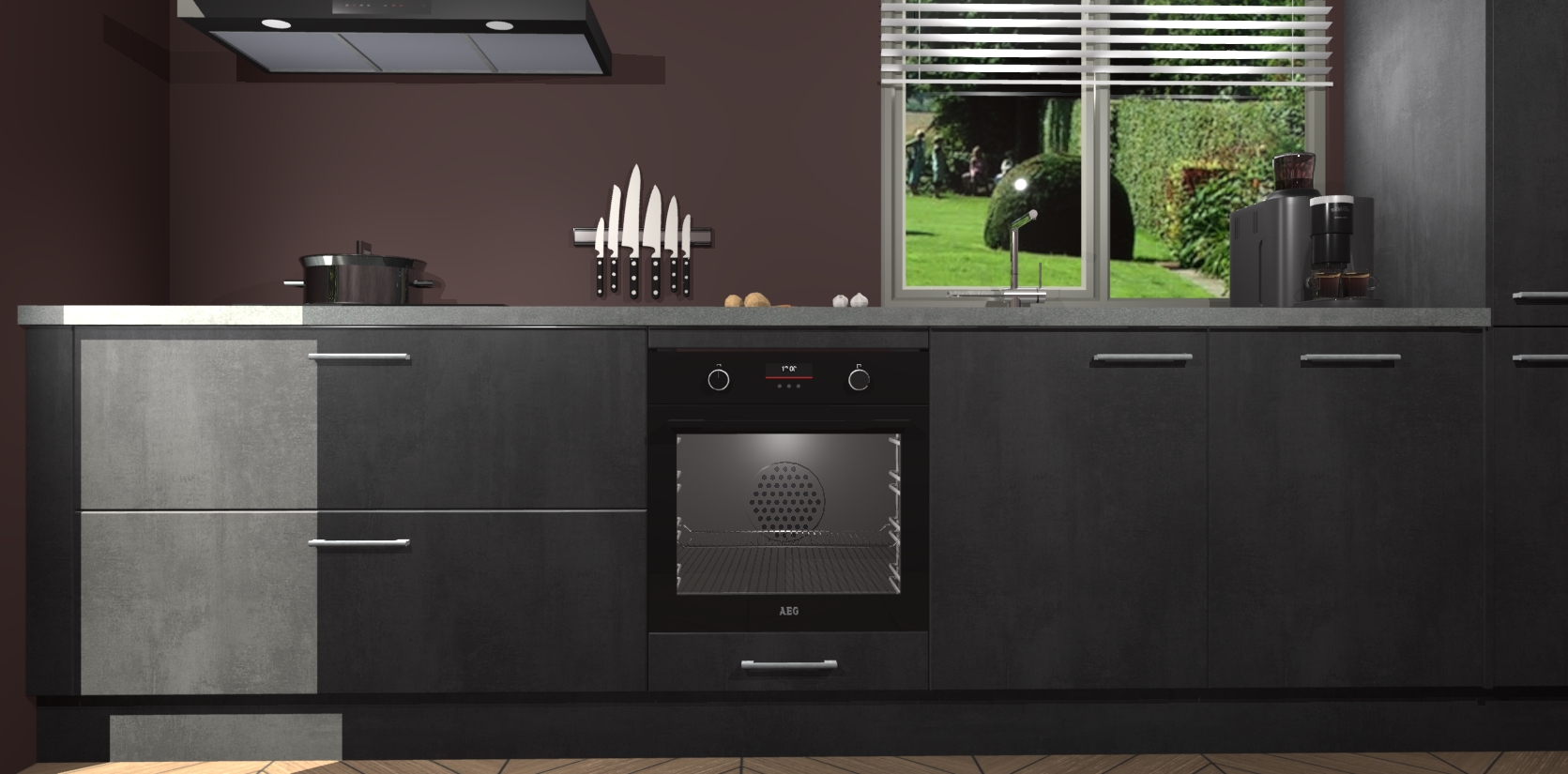 Maak kennis met de nieuwe Beton Zwarte keuken Antigua - een verbluffend, hoogwaardig keukenontwerp die uw ruimte gegarandeerd omtovert tot iets buitengewoons! Met zijn eigentijdse  kastdeuren met luxueuze softclose systeem is de Beton Zwarte keuken Antigua de perfecte keuze voor iedereen die de look en feel van zijn leefruimte wil opwaarderen.