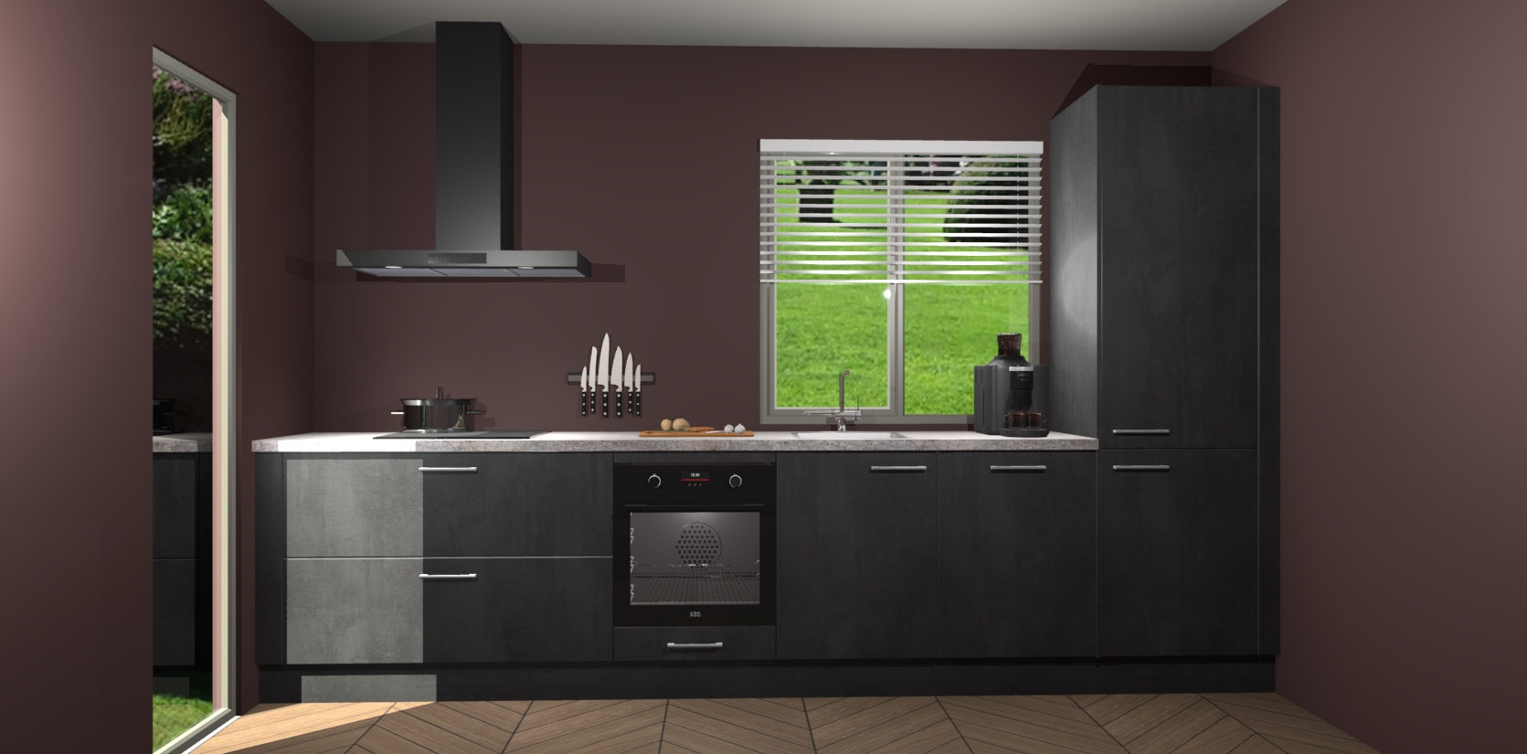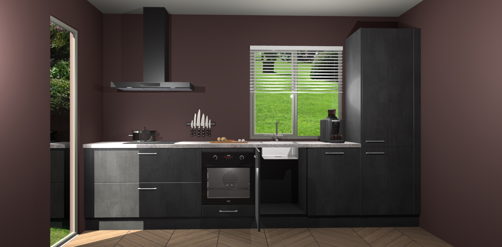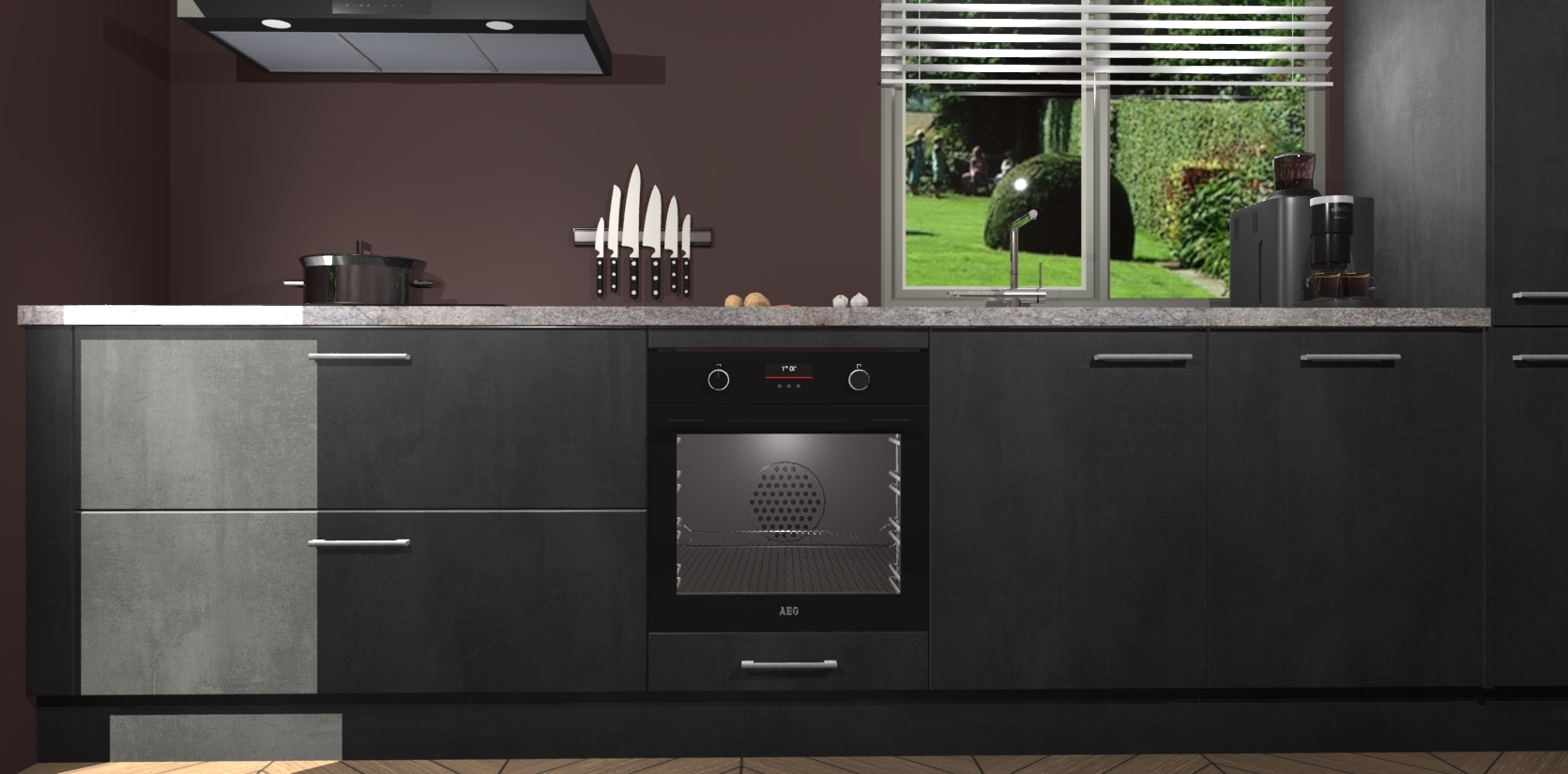 Maak kennis met de nieuwe Beton Zwarte keuken Antigua - een verbluffend, hoogwaardig keukenontwerp die uw ruimte gegarandeerd omtovert tot iets buitengewoons! Met zijn eigentijdse kastdeuren met luxueuze softclose systeem is de Beton Zwarte keuken Antigua de perfecte keuze voor iedereen die de look en feel van zijn leefruimte wil opwaarderen.