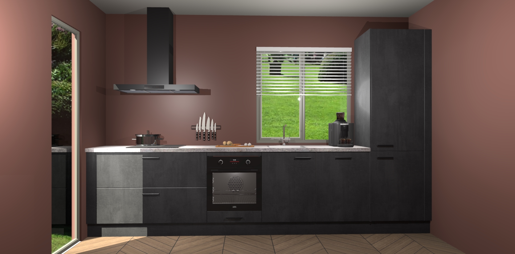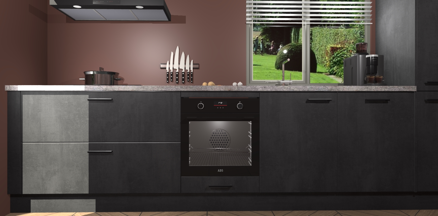 Maak kennis met de nieuwe Beton Zwarte keuken Antigua - een verbluffend, hoogwaardig keukenontwerp die uw ruimte gegarandeerd omtovert tot iets buitengewoons! Met zijn eigentijdse kastdeuren met luxueuze softclose systeem is de Beton Zwarte keuken Antigua de perfecte keuze voor iedereen die de look en feel van zijn leefruimte wil opwaarderen.