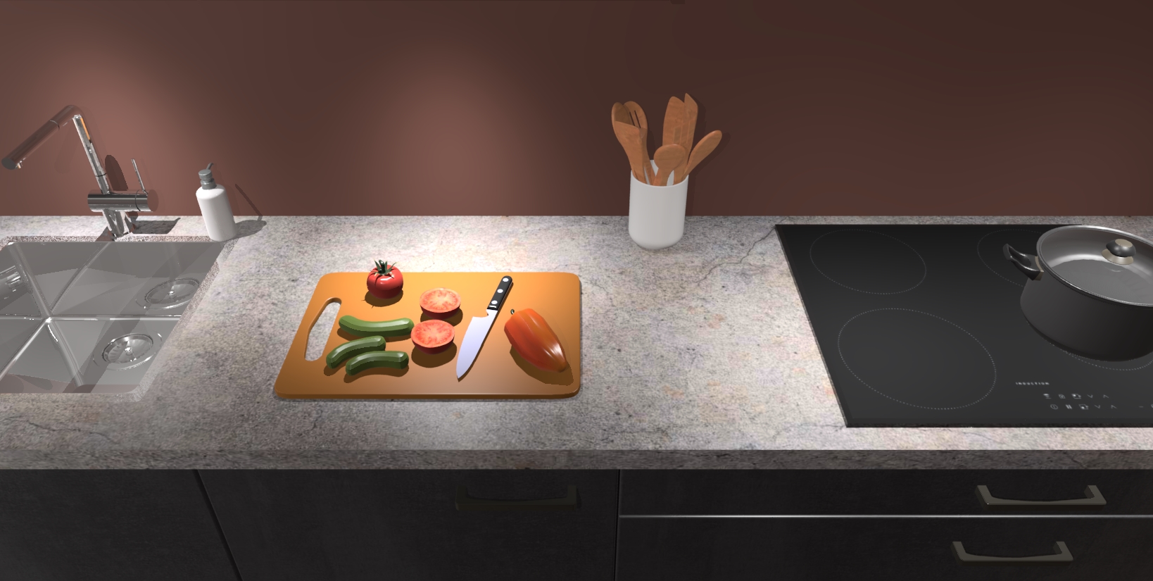 - Uitsparing van kookplaat, spoelbak en kraan dient u zelf te verzorgen.