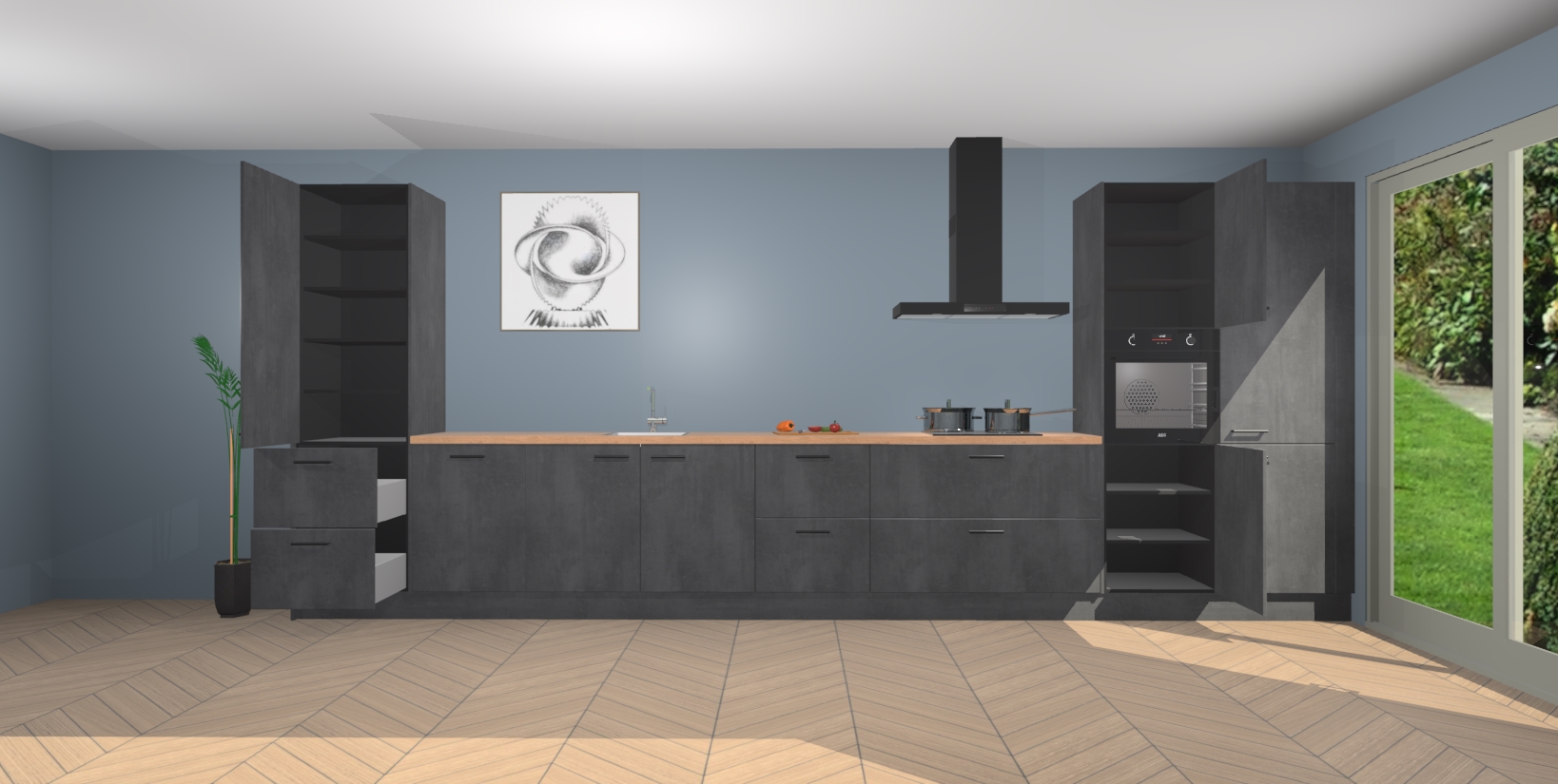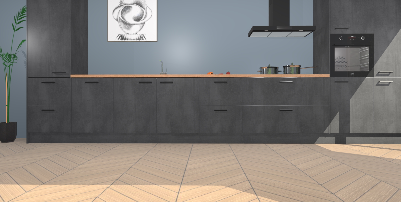 Inclusief plinten, stelpoten en werkblad