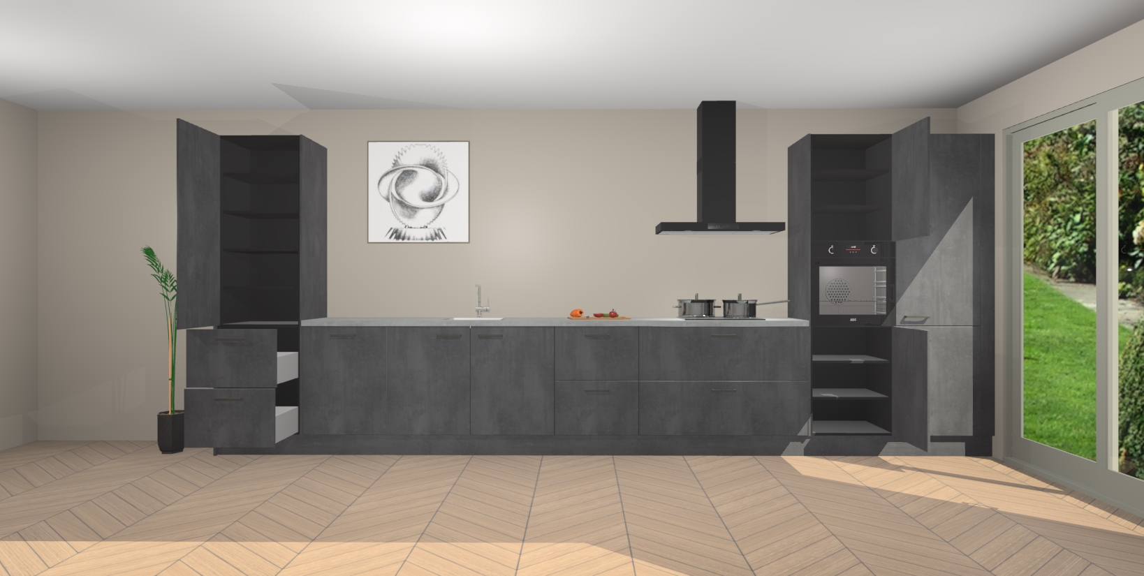 Inclusief plinten, stelpoten en werkblad