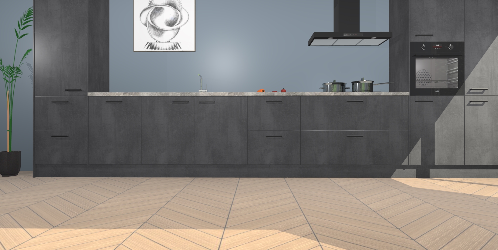 Inclusief plinten, stelpoten en werkblad