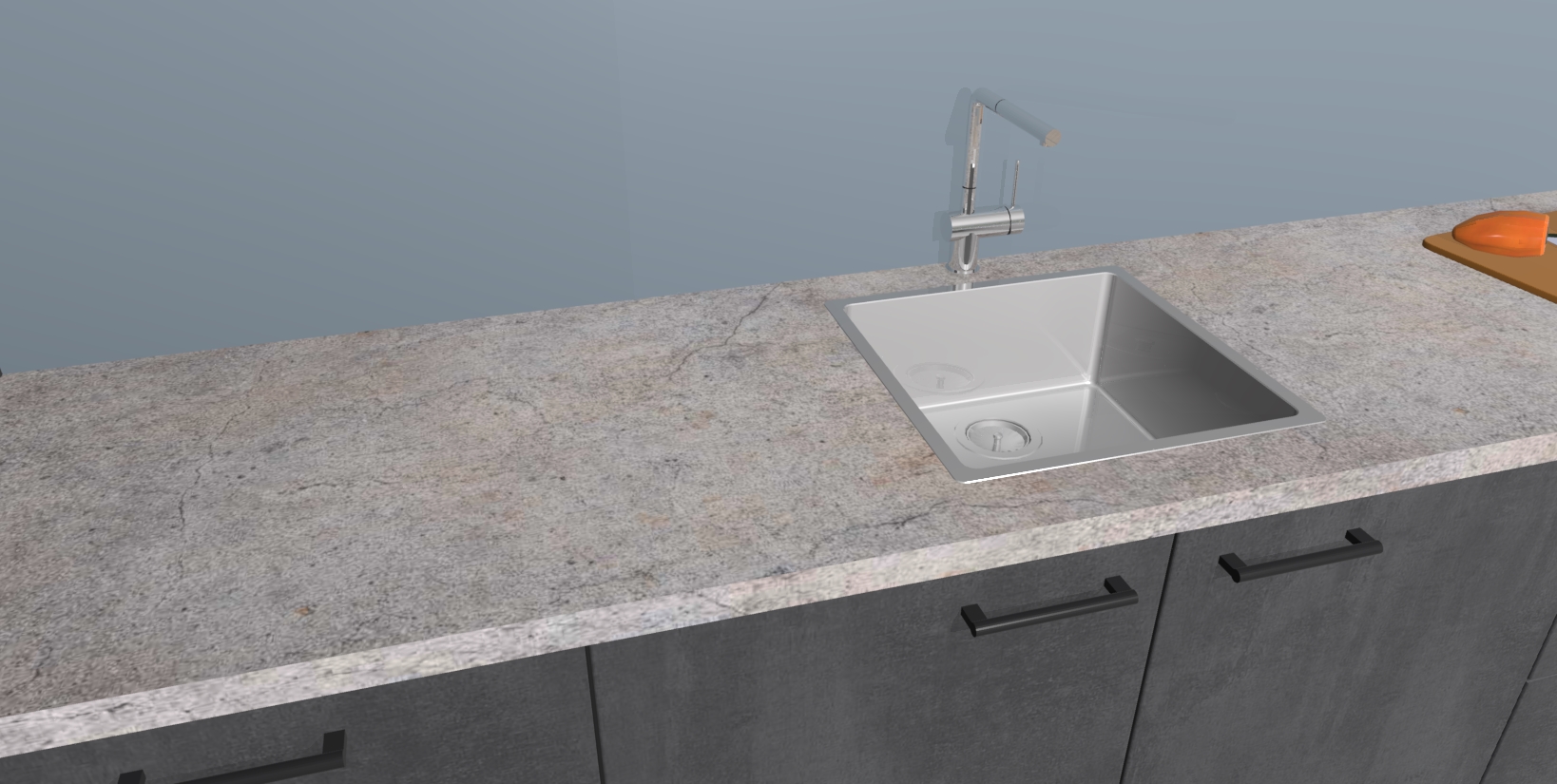 - De spoelbak is nog niet in gevreesd. Dit dient tijdens het werk gedaan te worden