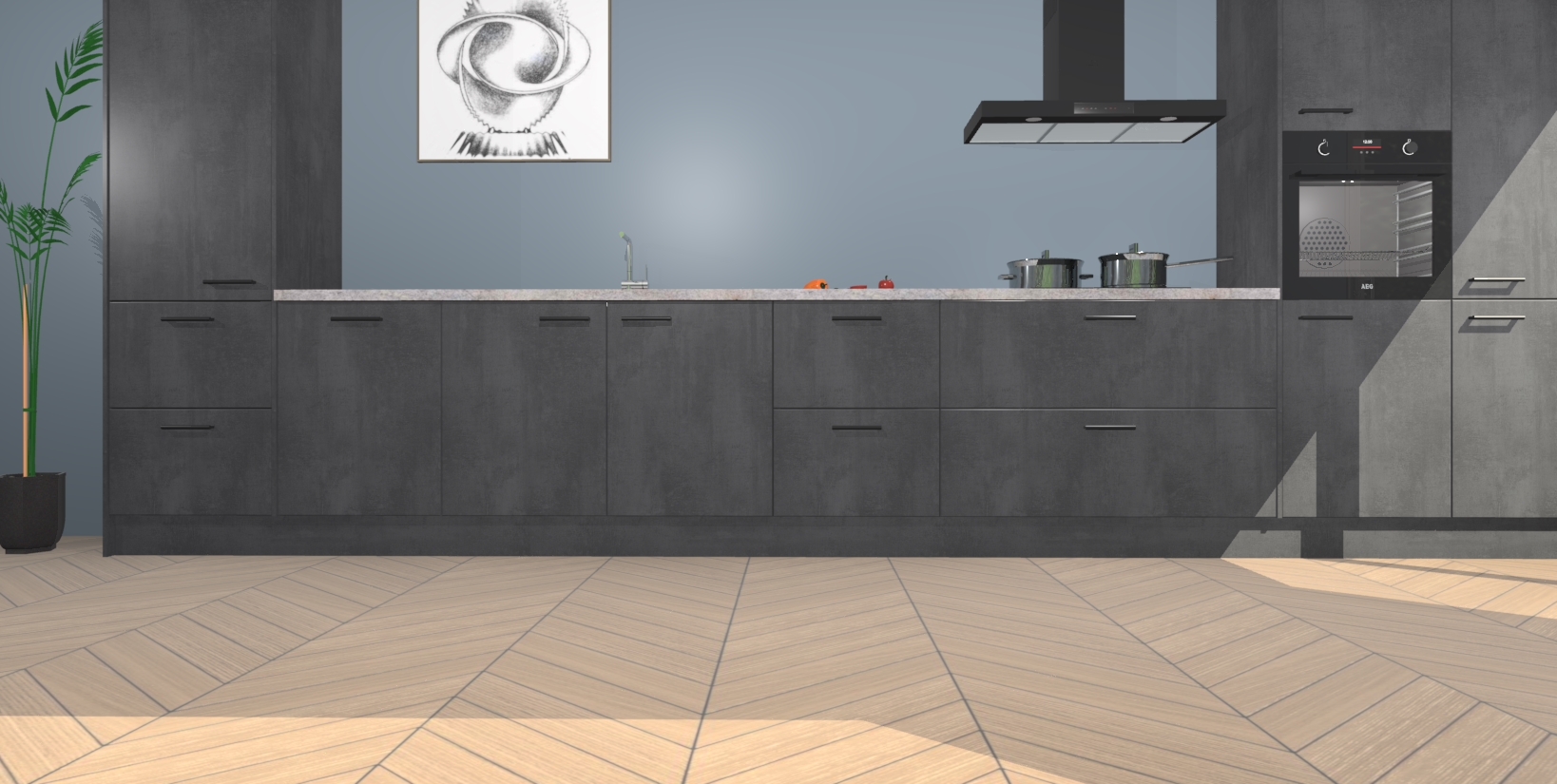 Inclusief plinten, stelpoten en werkblad