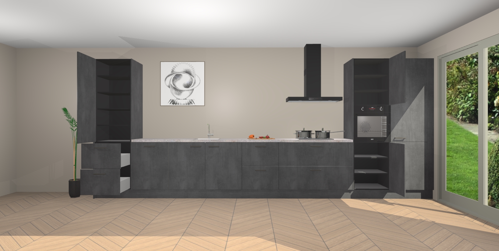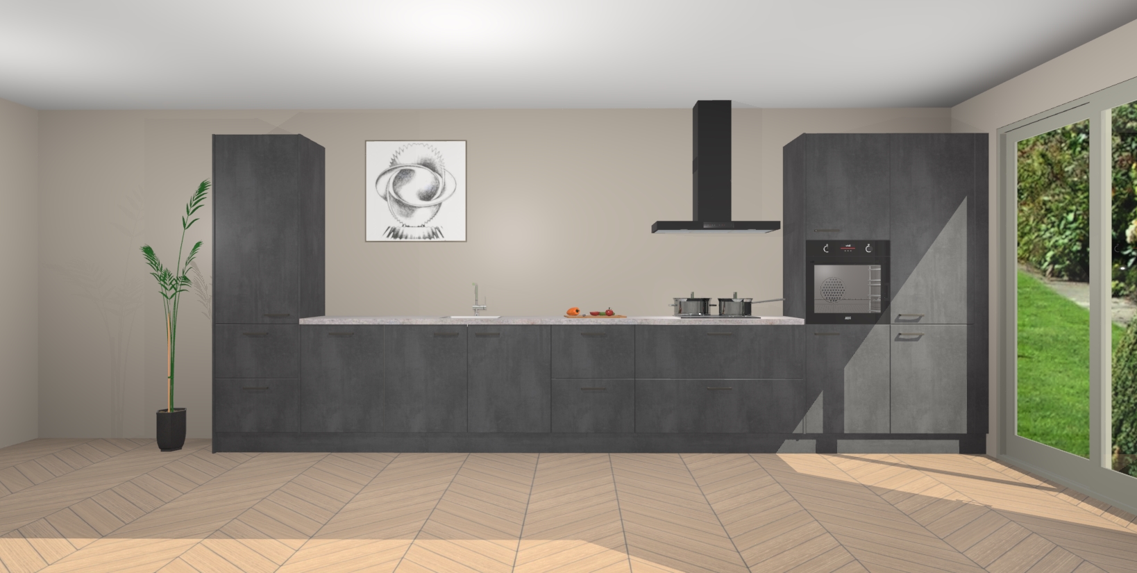 De Beton Zwarte keuken Barentsburg is de perfecte combinatie van stijl en functionaliteit. Het strakke design geeft uw keuken een moderne look die jarenlang meegaat. Bovendien zorgen onze deuren met softclose voor extra gebruiksgemak en gemoedsrust.