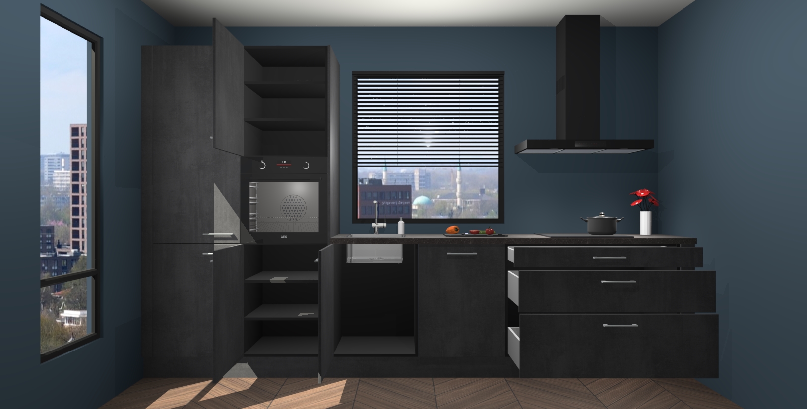 Stijlvol, eigentijds en dromerig Beton zwarte keuken Brussel, de perfecte keuze voor wie hunkert naar een esthetisch aangename ruimte om heerlijke maaltijden te bereiden.