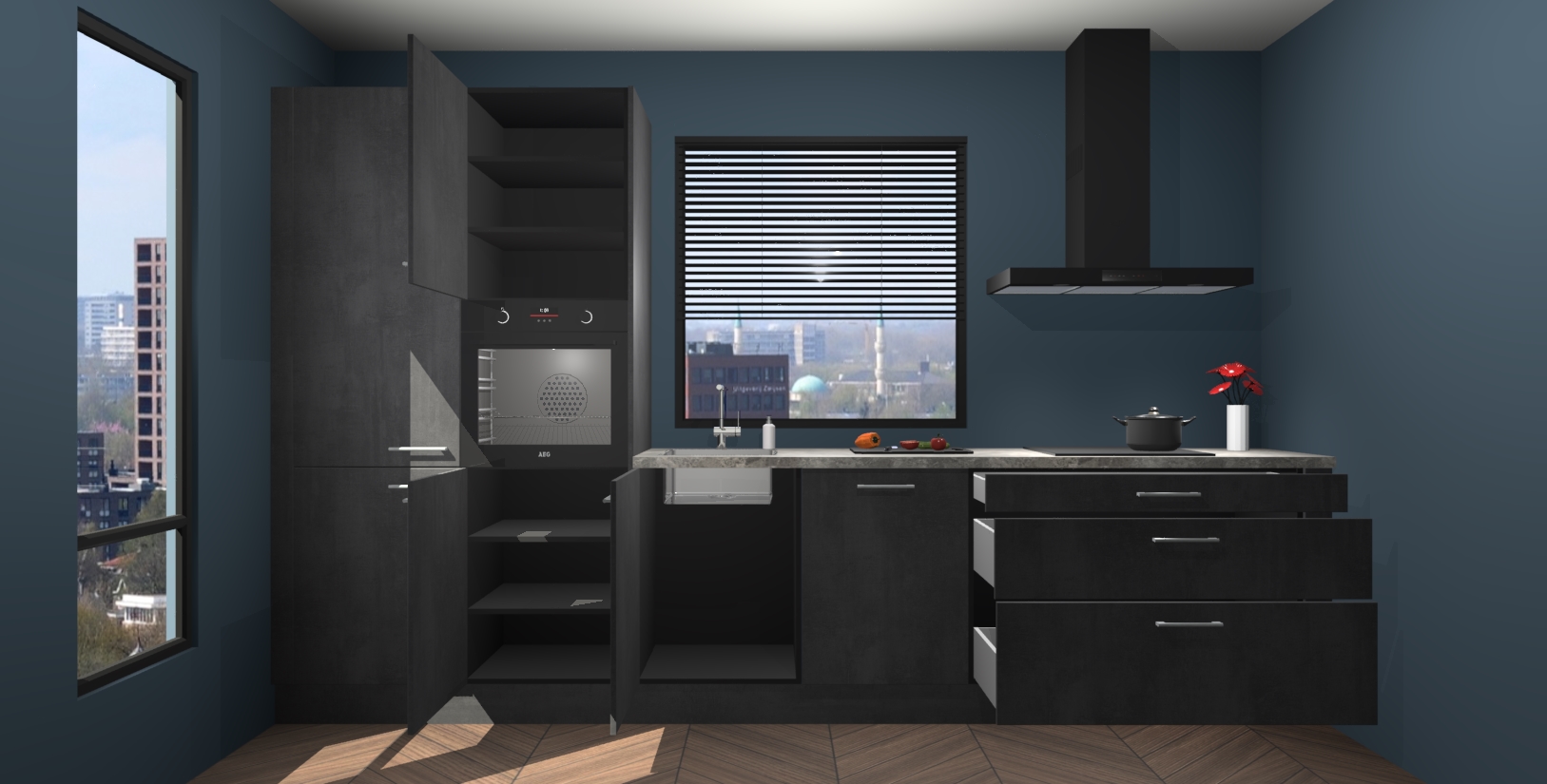 Stijlvol, eigentijds en dromerig Beton zwarte keuken Brussel, de perfecte keuze voor wie hunkert naar een esthetisch aangename ruimte om heerlijke maaltijden te bereiden.