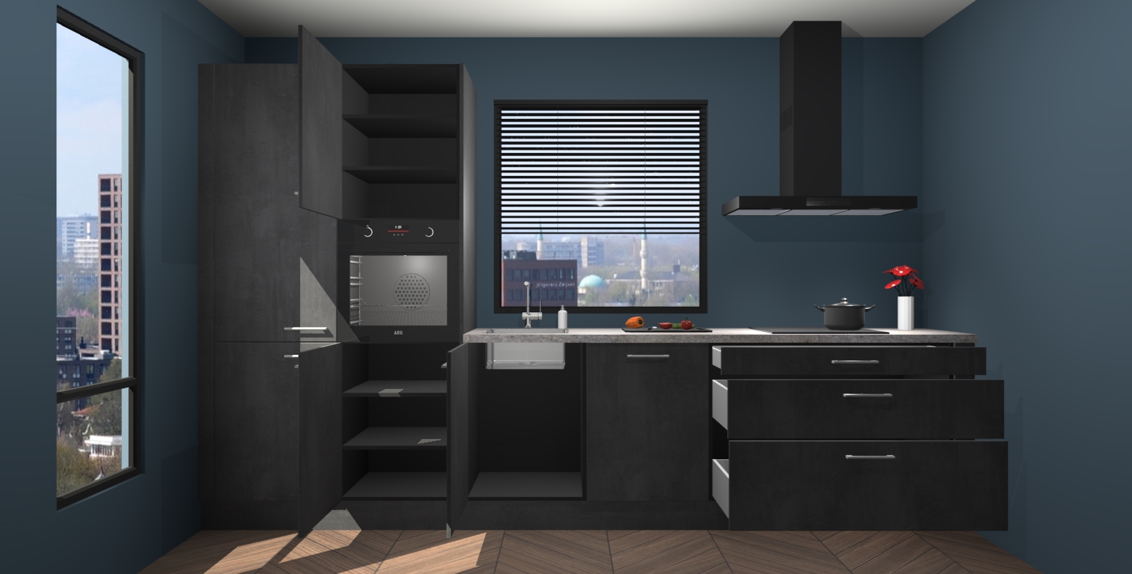 Stijlvol, eigentijds en dromerig Beton zwarte keuken Brussel, de perfecte keuze voor wie hunkert naar een esthetisch aangename ruimte om heerlijke maaltijden te bereiden.