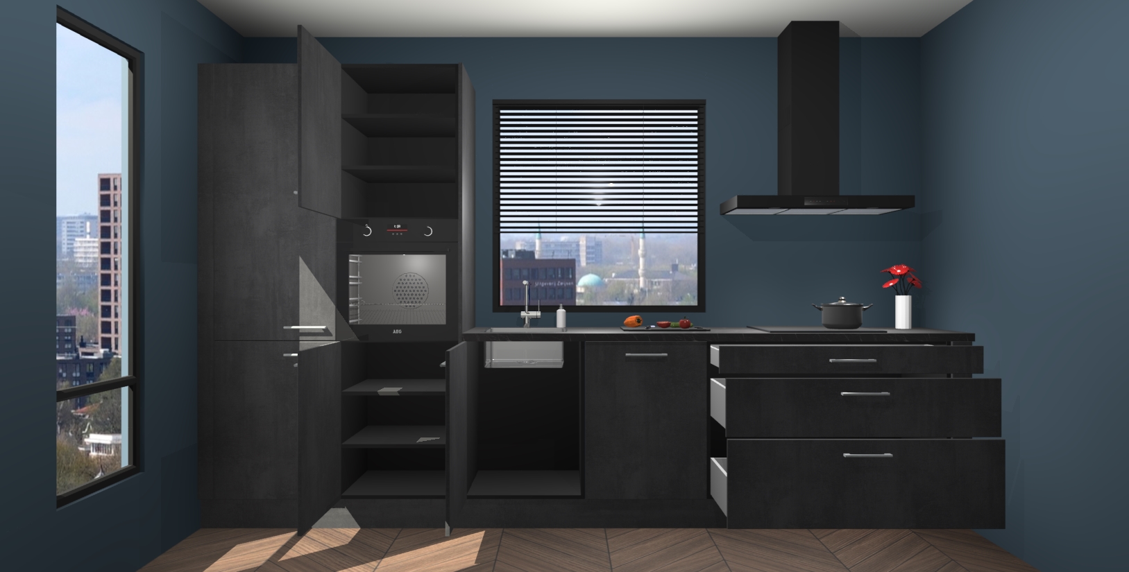 Stijlvol, eigentijds en dromerig Beton zwarte keuken Brussel, de perfecte keuze voor wie hunkert naar een esthetisch aangename ruimte om heerlijke maaltijden te bereiden.