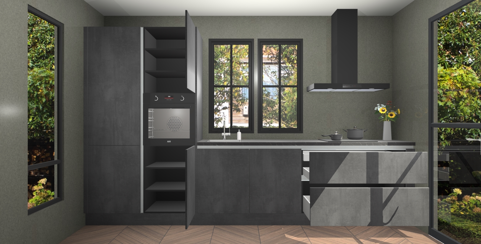 Dit is de perfecte keuken voor wie op zoek is naar een luxueuze stijl zonder zijn portemonnee te legen! Het chique ontwerp van de Beton zwarte keuken Brussel voegt dat vleugje verfijning toe aan elk huis. Het gemak van voorgemonteerde kasten bespaart u talloze uren tijd en energie, zodat u veel sneller dan verwacht kunt beginnen te genieten van uw prachtige nieuwe keuken. Bovendien bedraagt de levertijd slechts 7 weken.