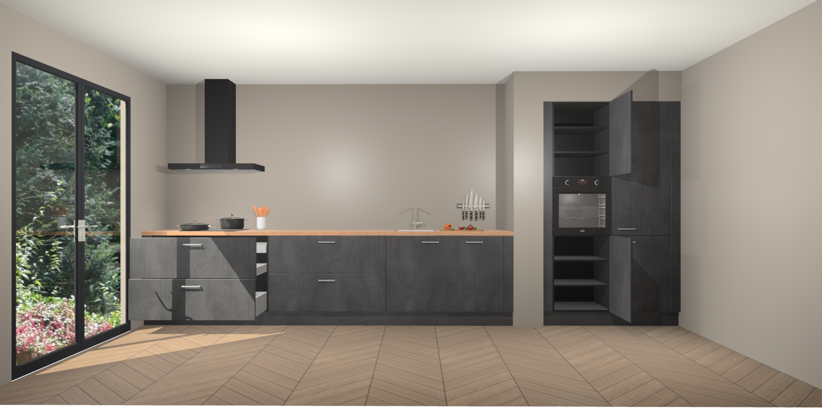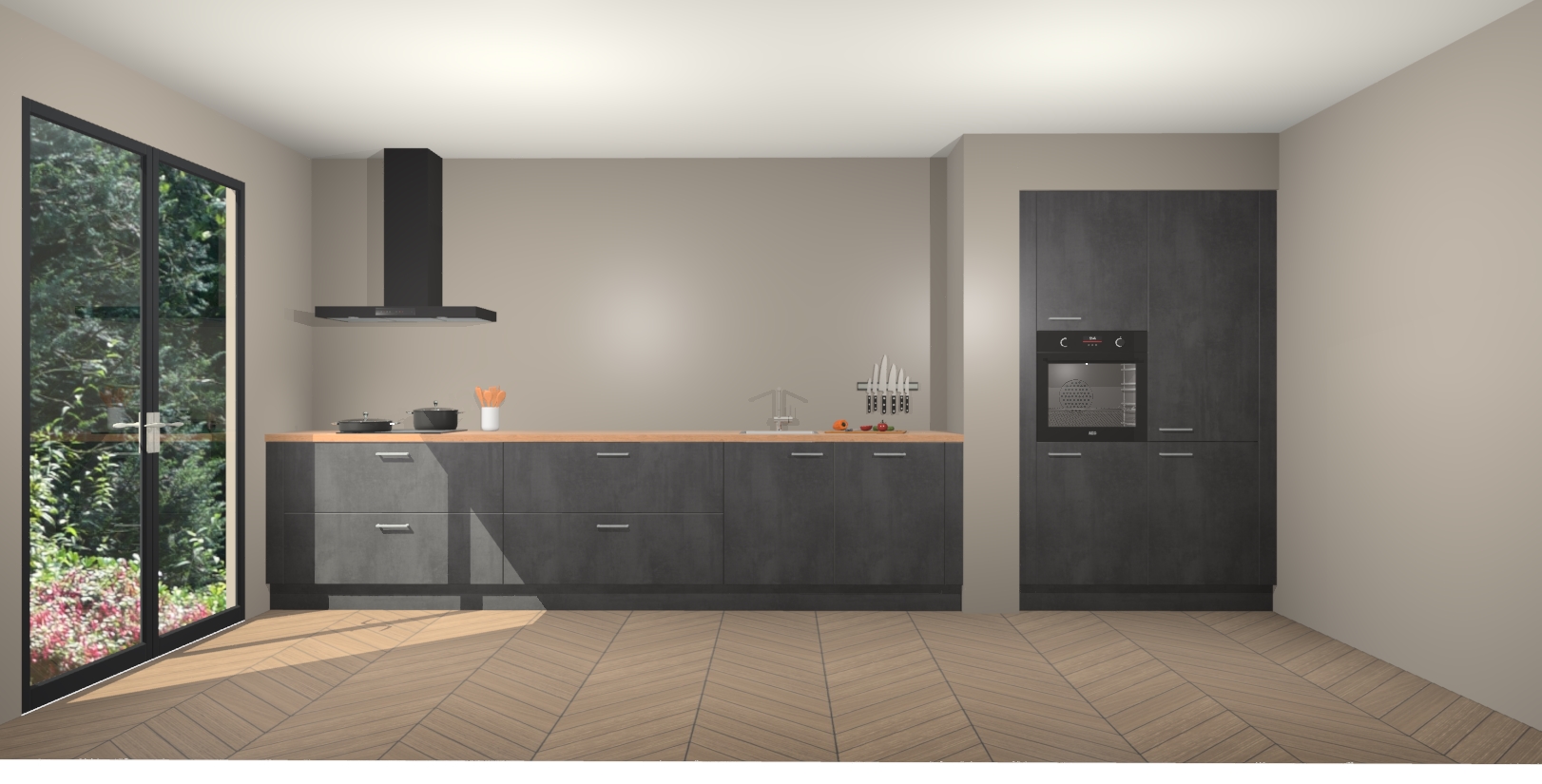 Maak kennis met de Beton Zwarte keuken Calgary - de perfecte aanvulling voor uw moderne keuken! Ervaar tijdloos design, elegantie en een chique uitstraling met onze handgrepen, soft-close deuren en veel opbergruimte. Dit alles wordt aangeboden tegen een vaste lage prijs voor ongeëvenaarde Duitse keukenkwaliteit!