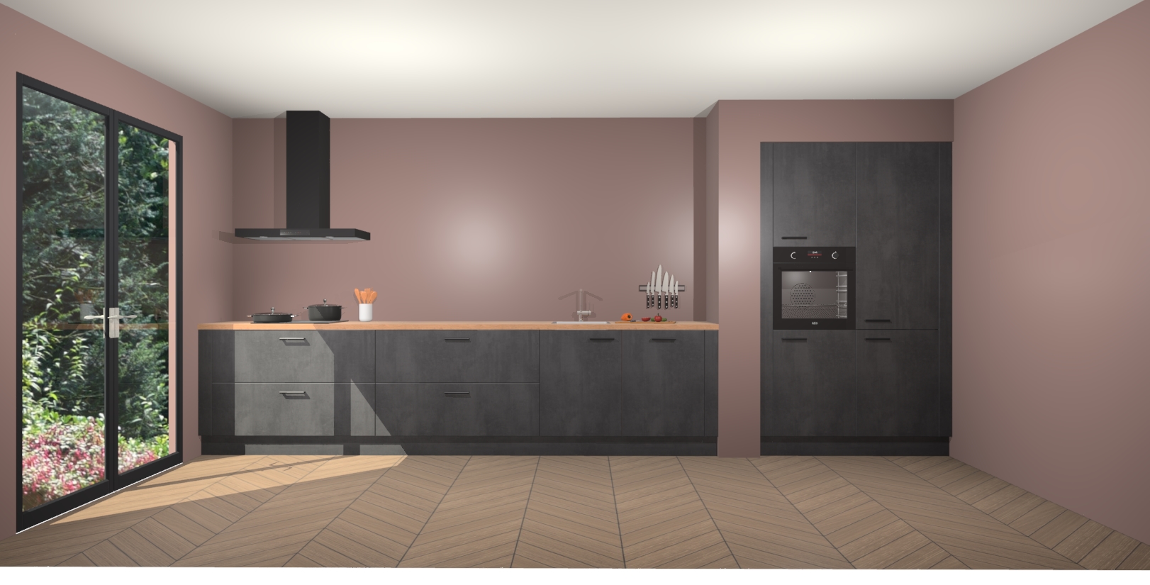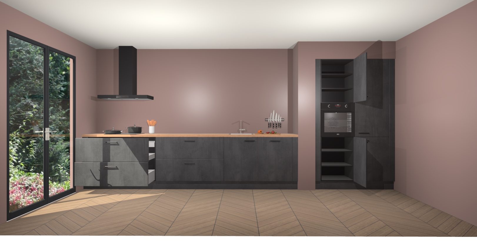 Met de Beton Zwarte keuken Calgary Maakt u van uw keuken het pronkstuk van uw huis. Stijlvol en toch praktisch, de nieuwste look voor wie meer waarde en charme aan zijn huis wil toevoegen. Met prachtige handgrepen die zich lenen voor een klassieke stijlbron, zal u niet teleurgesteld zijn in het resultaat. De soft-close deurscharnieren geven een gevoel van luxe omdat ze zachtjes bewegen zonder storende of krakende geluiden te veroorzaken.