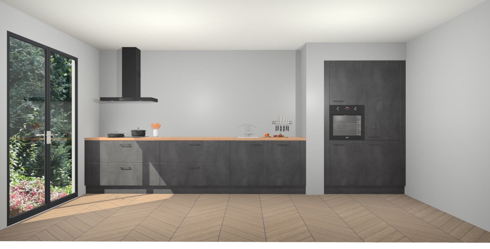 Maak kennis met de Beton Zwarte keuken Calgary - de perfecte aanvulling voor uw moderne keuken! Ervaar tijdloos design, elegantie en een chique uitstraling met onze handgrepen, soft-close deuren en veel opbergruimte. Dit alles wordt aangeboden tegen een vaste lage prijs voor ongeëvenaarde Duitse keukenkwaliteit!