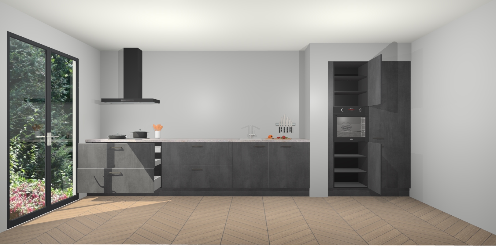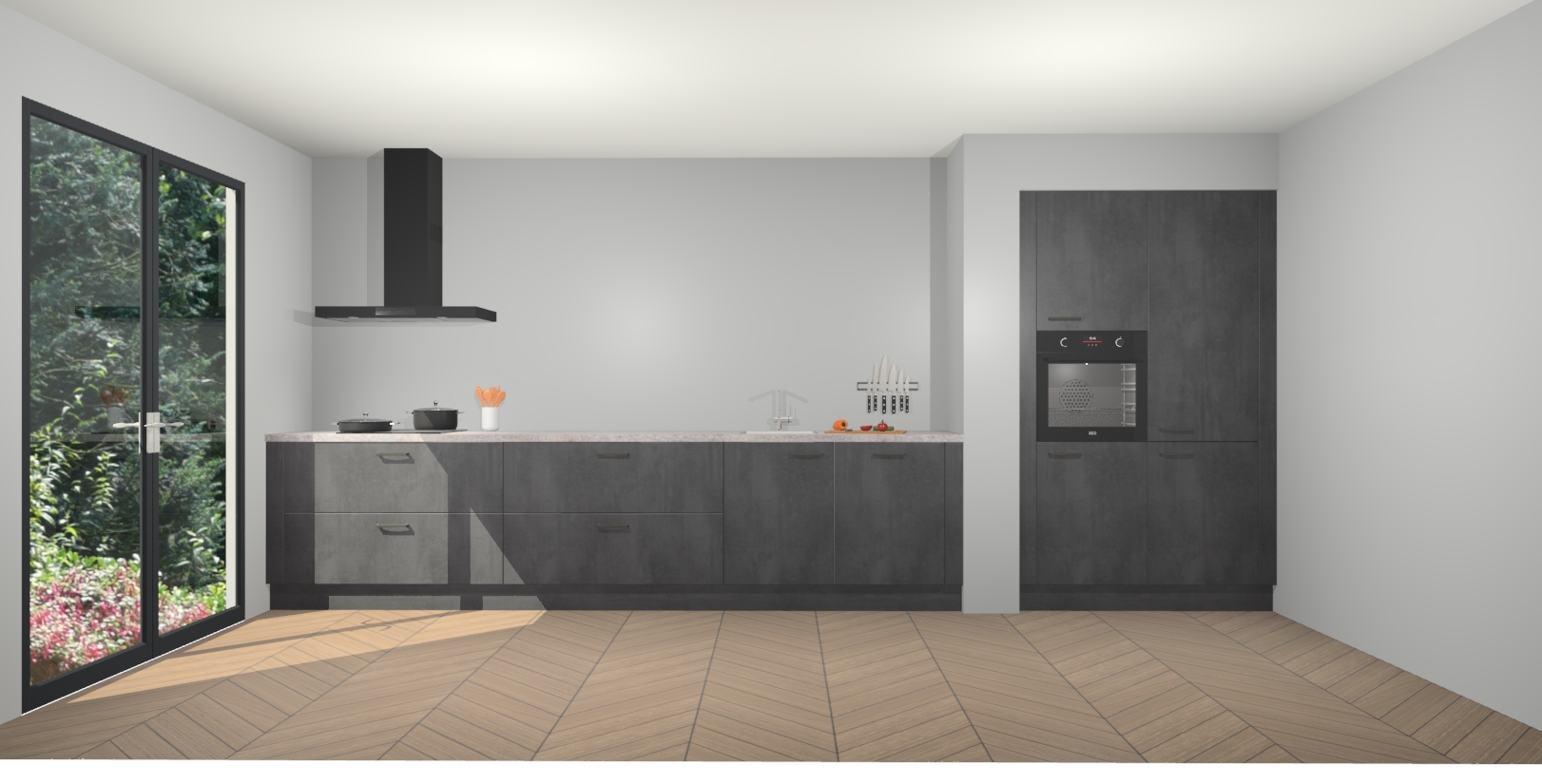 Maak kennis met de Beton Zwarte keuken Calgary - de perfecte aanvulling voor uw moderne keuken! Ervaar tijdloos design, elegantie en een chique uitstraling met onze handgrepen, soft-close deuren en veel opbergruimte. Dit alles wordt aangeboden tegen een vaste lage prijs voor ongeëvenaarde Duitse keukenkwaliteit!
