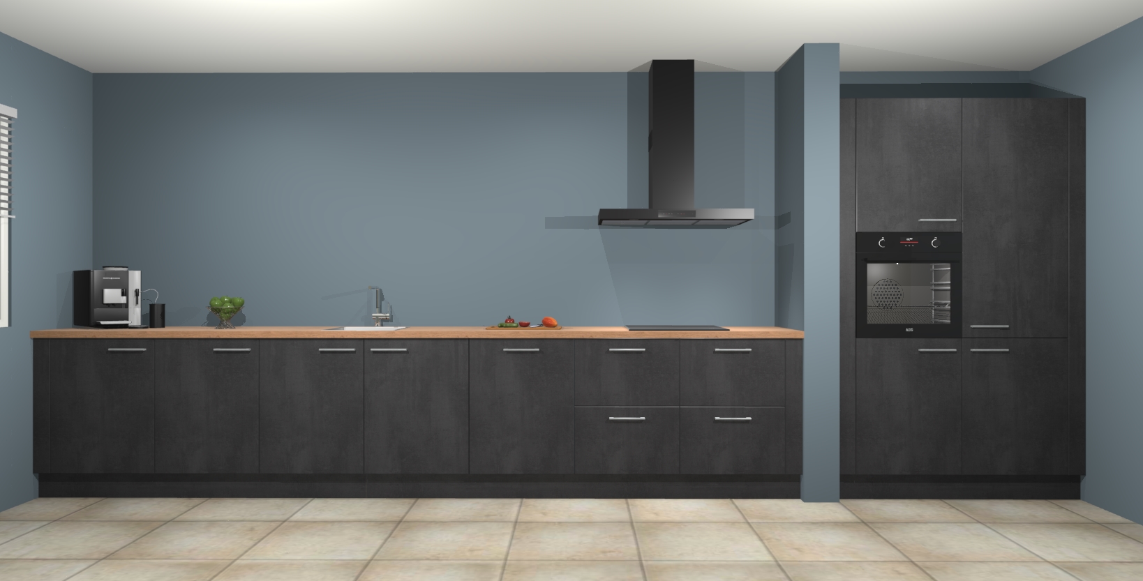 Maak kennis met de Beton zwarte keuken Elzas - de perfecte aanvulling voor uw moderne keuken! Ervaar tijdloos design, elegantie en een chique uitstraling met onze handgrepen, soft-close deuren en veel opbergruimte. Dit alles wordt aangeboden tegen een vaste lage prijs voor ongeëvenaarde Duitse keukenkwaliteit!