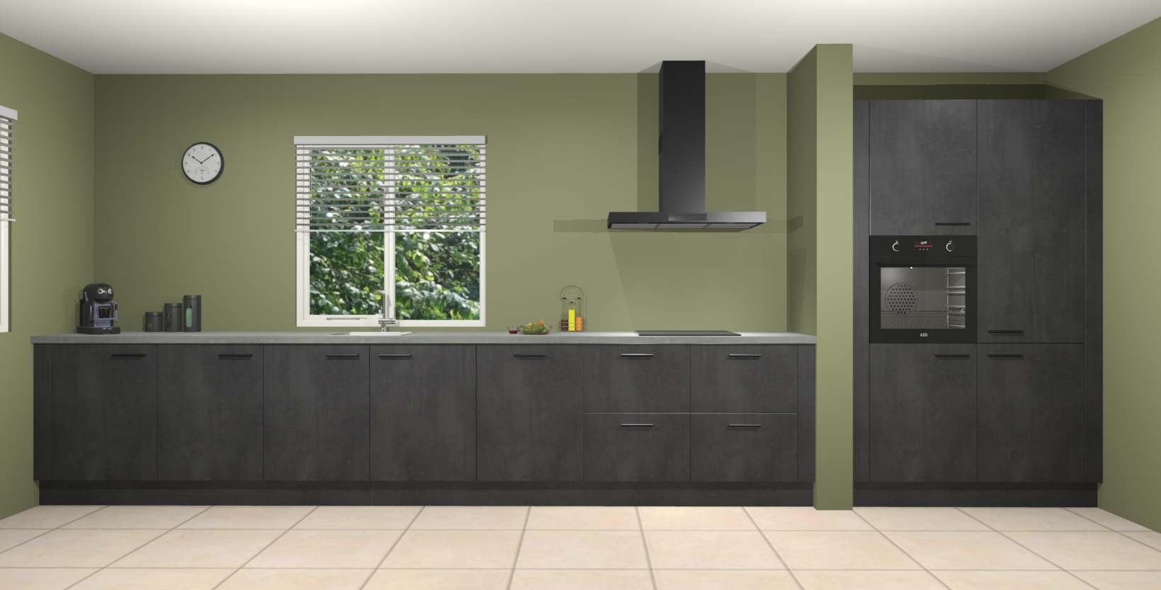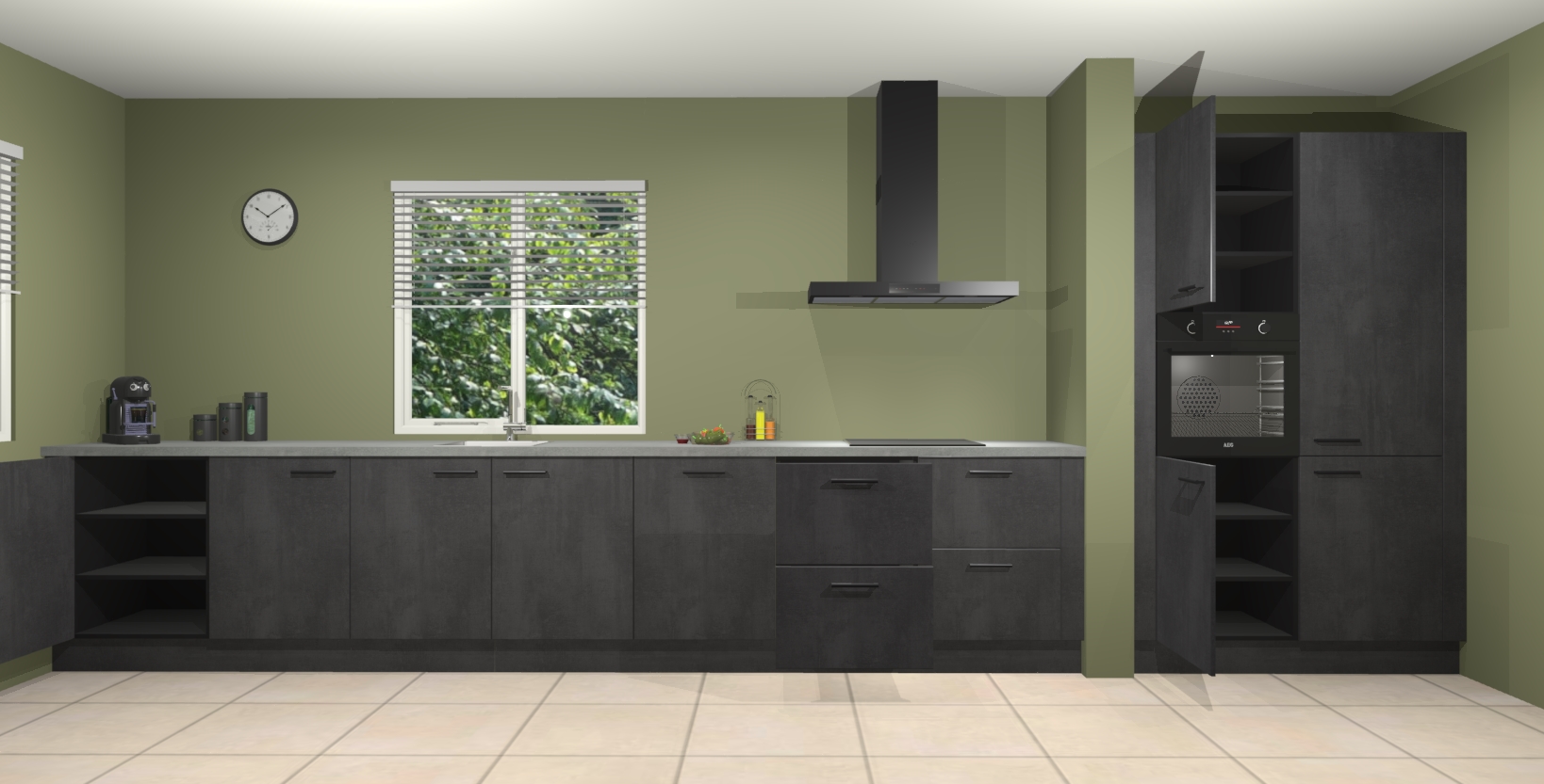 Maak kennis met de Beton zwarte keuken Elzas - de perfecte aanvulling voor uw moderne keuken! Ervaar tijdloos design, elegantie en een chique uitstraling met onze handgrepen, soft-close deuren en veel opbergruimte. Dit alles wordt aangeboden tegen een vaste lage prijs voor ongeëvenaarde Duitse keukenkwaliteit!