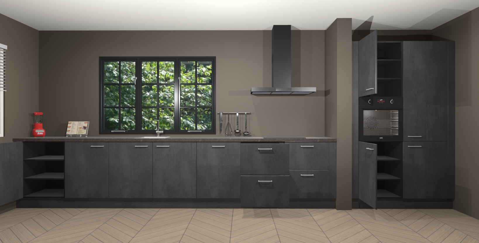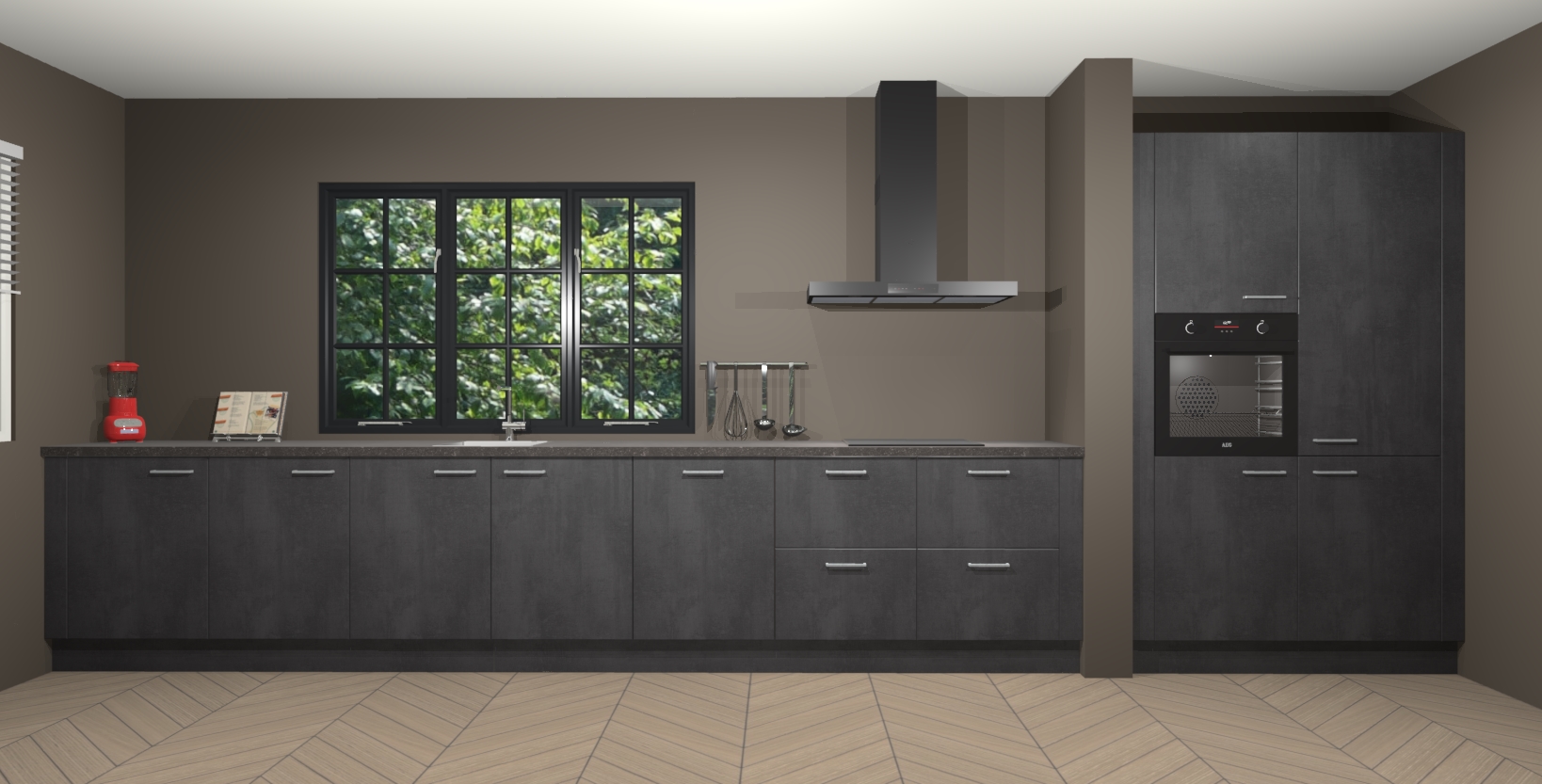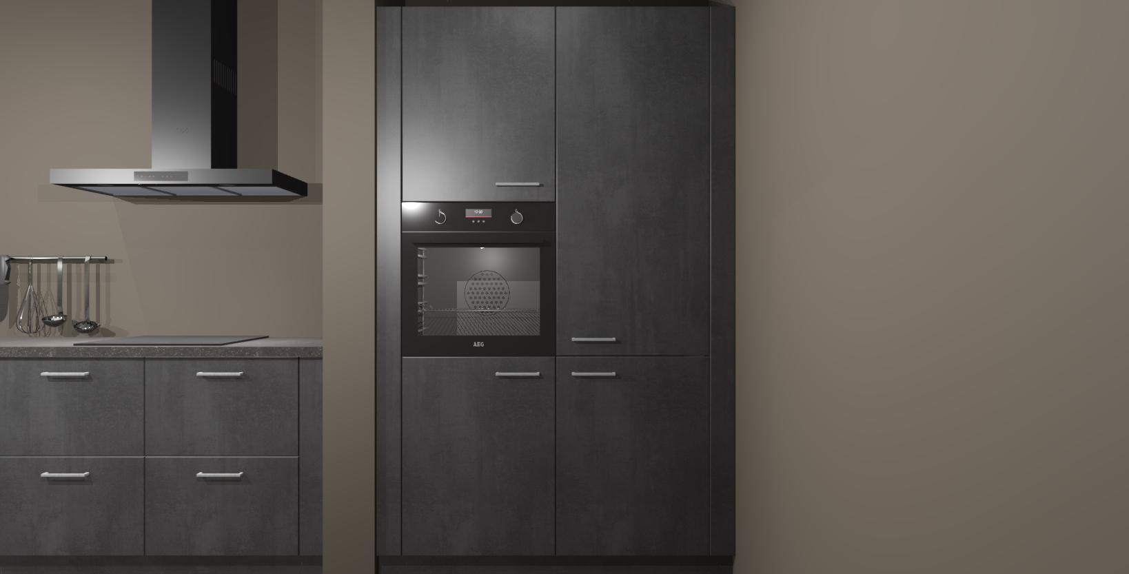 Maak kennis met de Beton zwarte keuken Elzas - de perfecte aanvulling voor uw moderne keuken! Ervaar tijdloos design, elegantie en een chique uitstraling met onze handgrepen, soft-close deuren en veel opbergruimte. Dit alles wordt aangeboden tegen een vaste lage prijs voor ongeëvenaarde Duitse keukenkwaliteit!