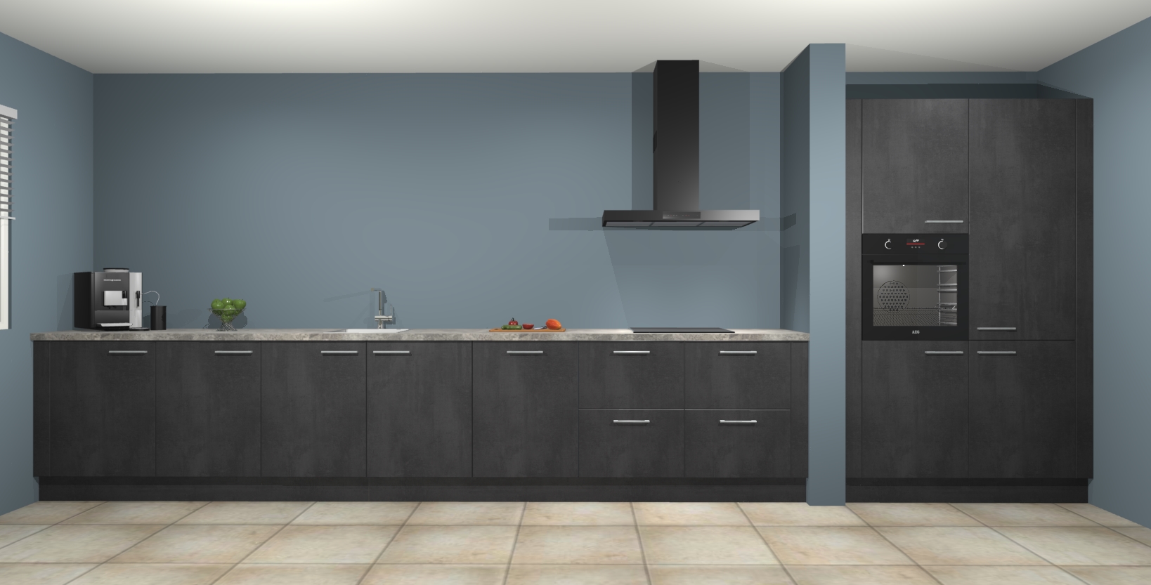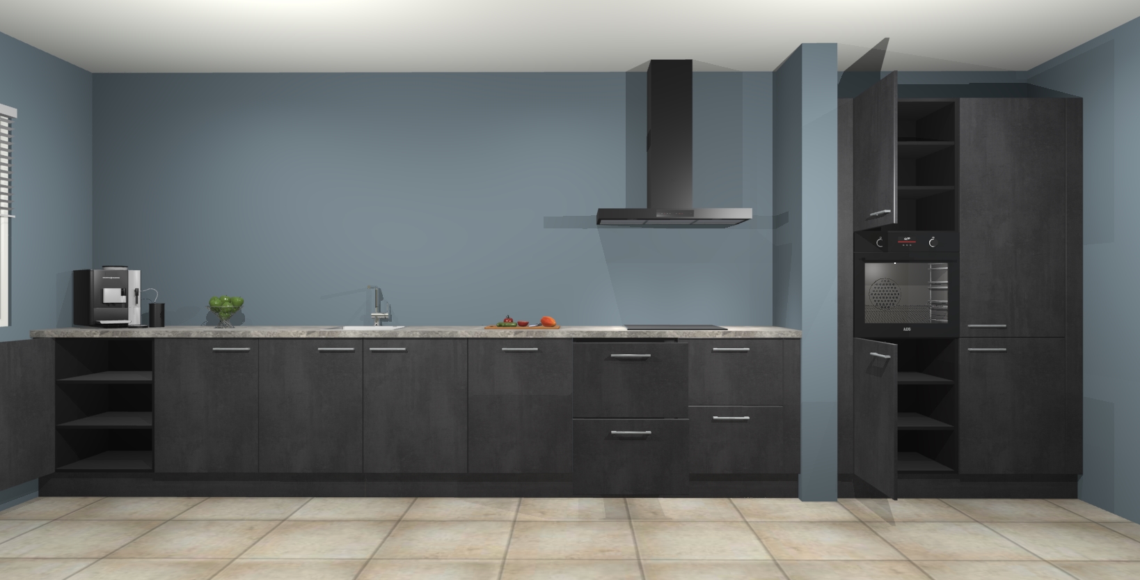 Maak kennis met de Beton zwarte keuken Elzas - de perfecte aanvulling voor uw moderne keuken! Ervaar tijdloos design, elegantie en een chique uitstraling met onze handgrepen, soft-close deuren en veel opbergruimte. Dit alles wordt aangeboden tegen een vaste lage prijs voor ongeëvenaarde Duitse keukenkwaliteit!