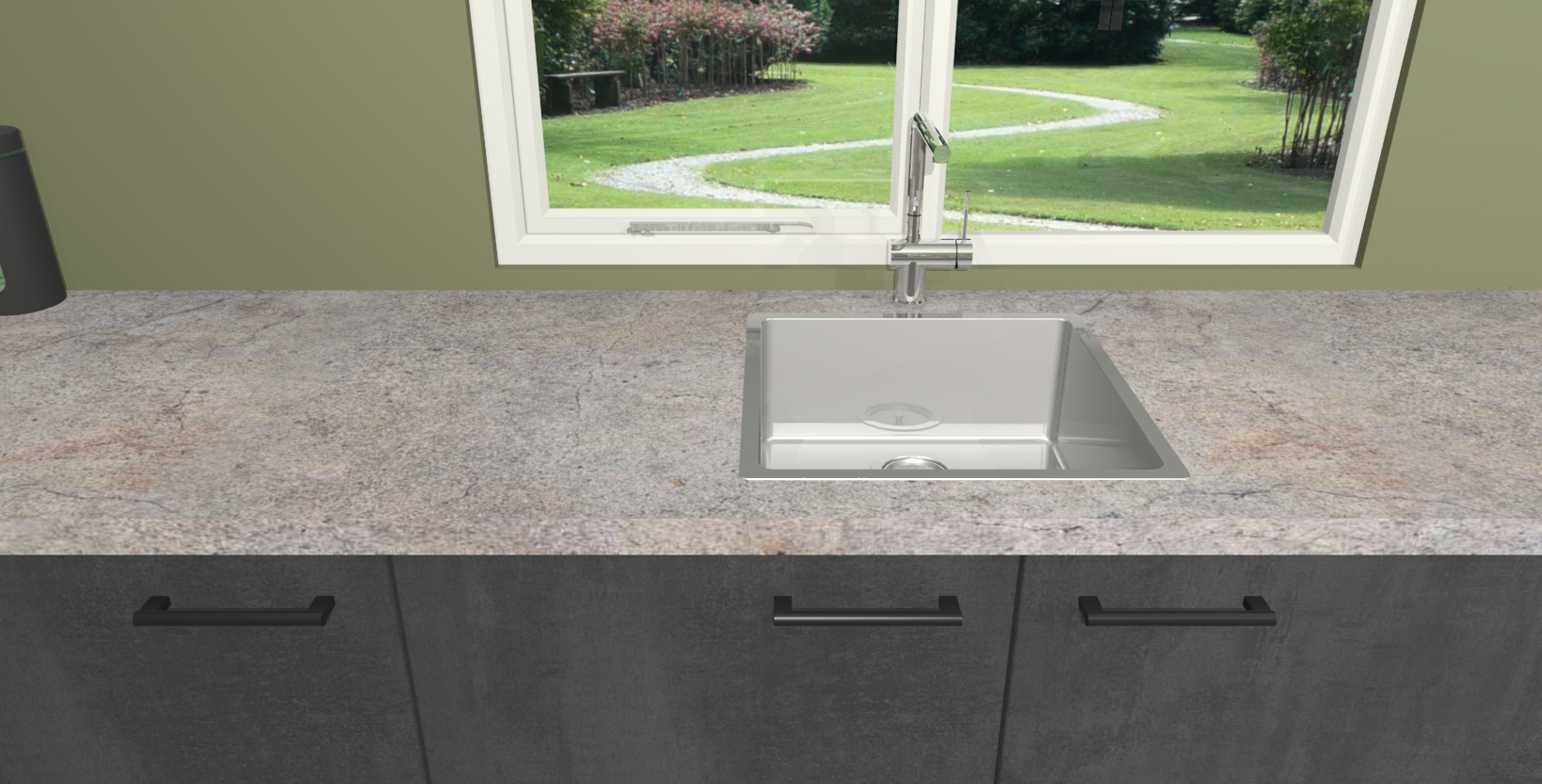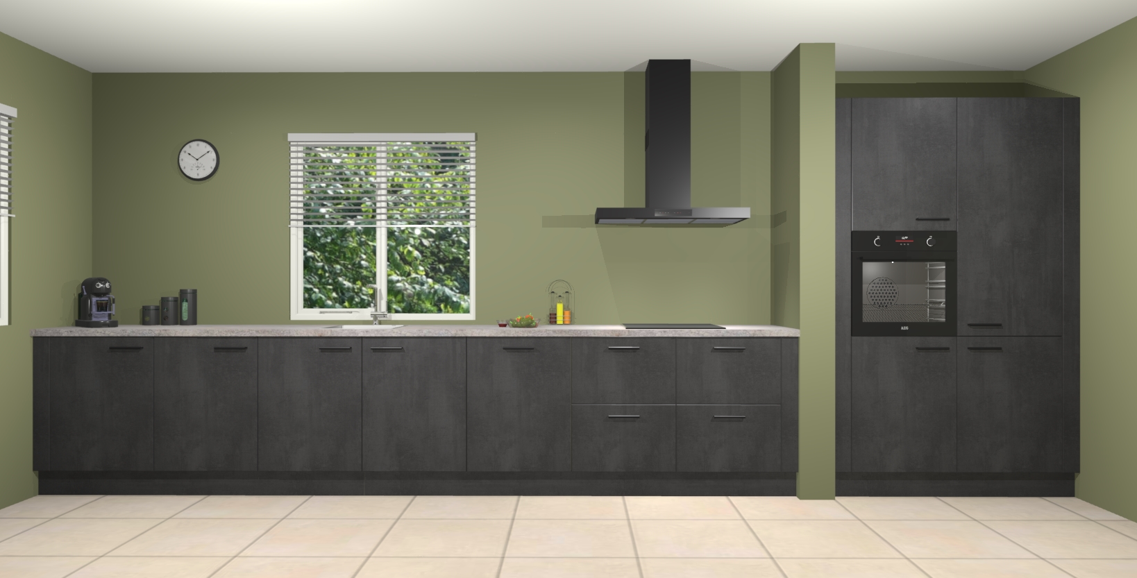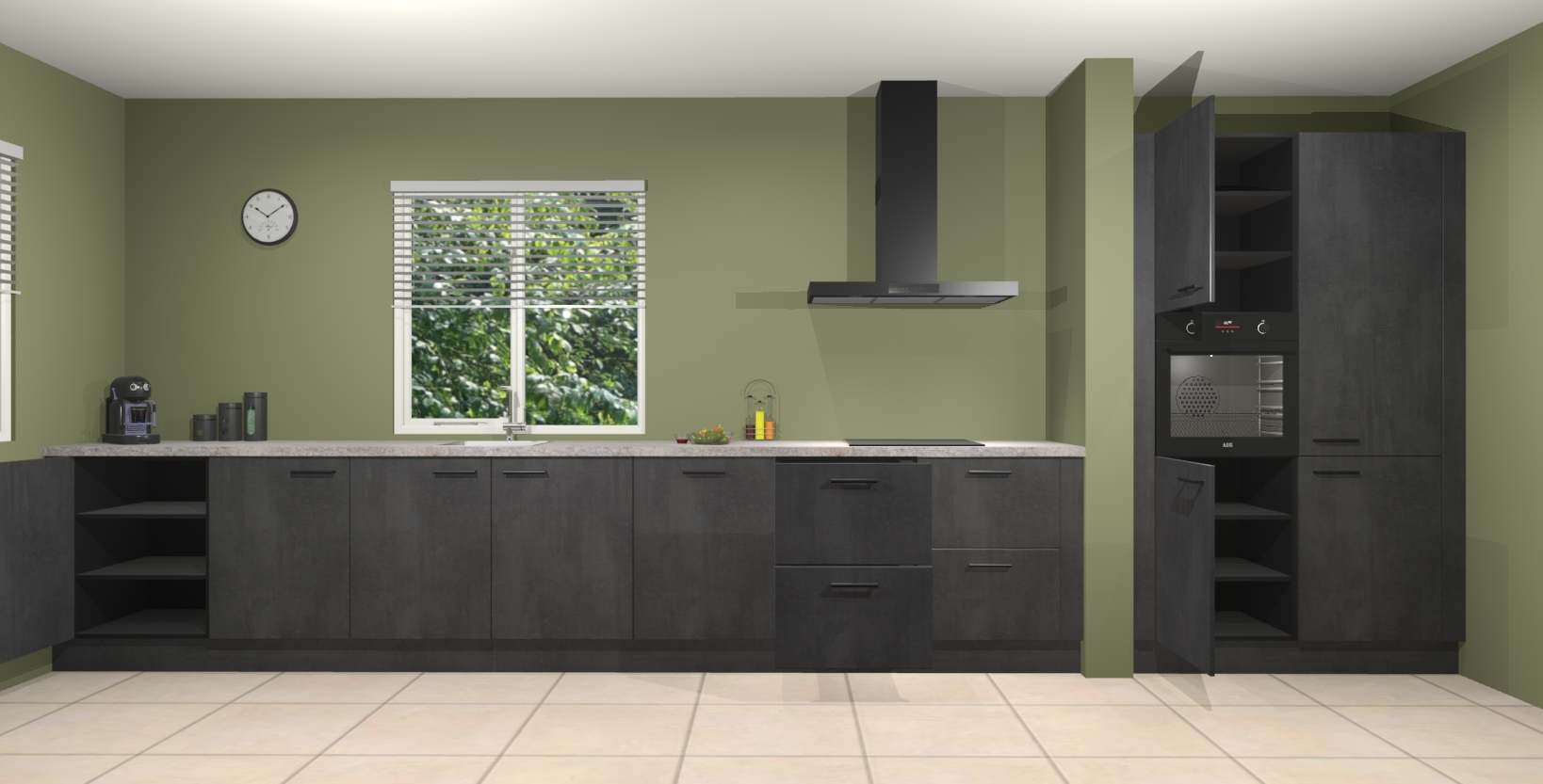Maak kennis met de Beton zwarte keuken Elzas - de perfecte aanvulling voor uw moderne keuken! Ervaar tijdloos design, elegantie en een chique uitstraling met onze handgrepen, soft-close deuren en veel opbergruimte. Dit alles wordt aangeboden tegen een vaste lage prijs voor ongeëvenaarde Duitse keukenkwaliteit!