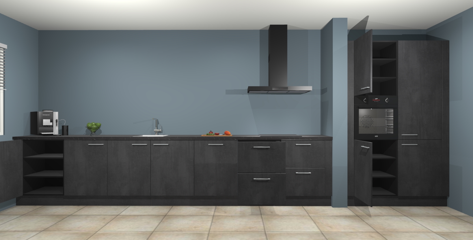 Maak kennis met de Beton zwarte keuken Elzas - de perfecte aanvulling voor uw moderne keuken! Ervaar tijdloos design, elegantie en een chique uitstraling met onze handgrepen, soft-close deuren en veel opbergruimte. Dit alles wordt aangeboden tegen een vaste lage prijs voor ongeëvenaarde Duitse keukenkwaliteit!