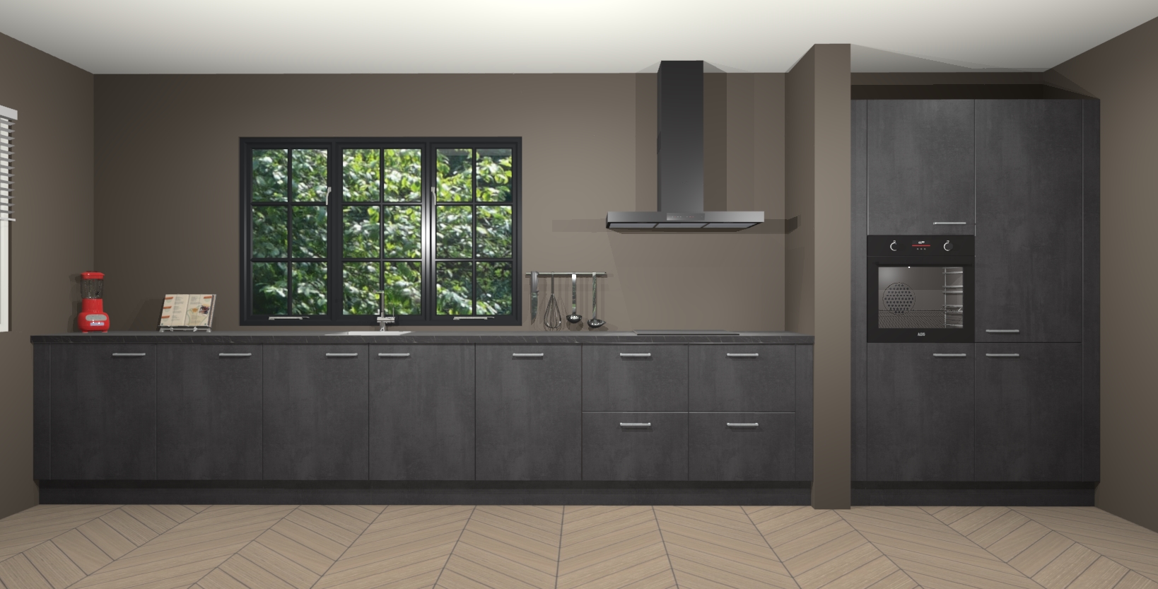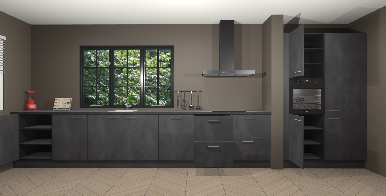 Maak kennis met de Beton zwarte keuken Elzas - de perfecte aanvulling voor uw moderne keuken! Ervaar tijdloos design, elegantie en een chique uitstraling met onze handgrepen, soft-close deuren en veel opbergruimte. Dit alles wordt aangeboden tegen een vaste lage prijs voor ongeëvenaarde Duitse keukenkwaliteit!