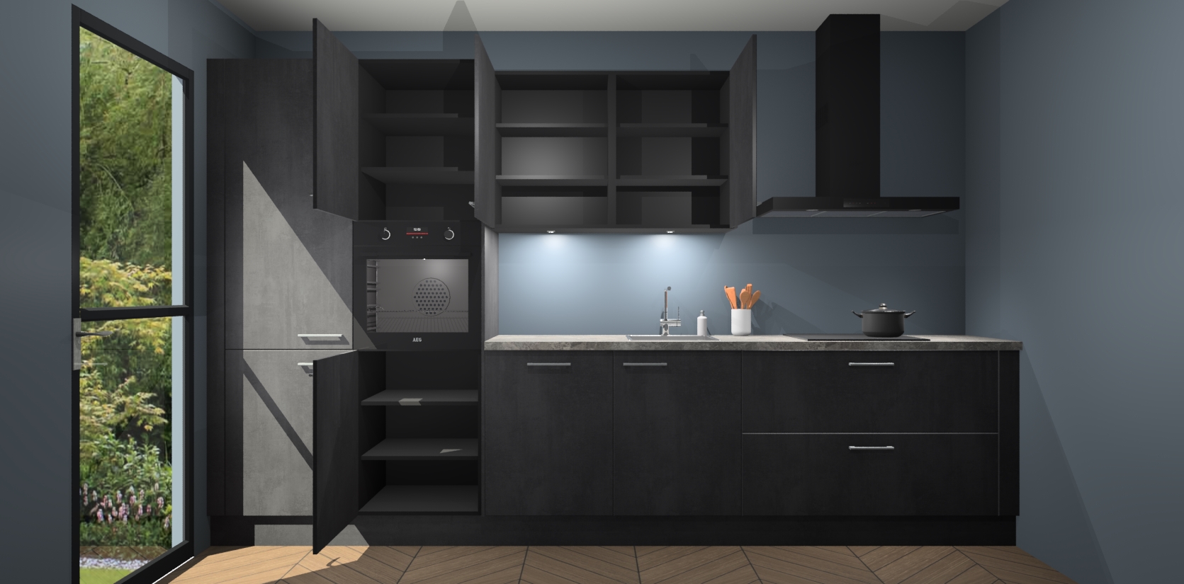 De Beton Zwarte keuken Groenland: waar tijdloze elegantie en robuuste constructie elkaar ontmoeten. Door de combinatie van luxe en veerkracht zal deze keuken u de komende jaren goed van dienst zijn. De prachtige zachte look zorgt voor een tijdloze esthetiek die niet zal slijten met de tijd, waardoor u een decoratieve toevoeging aan uw huis creëert. Onze hoogwaardige kasten zijn gebouwd om lang mee te gaan en is zeer duurzaam en bestand tegen krassen, waardoor het ideaal is voor drukke gezinnen.