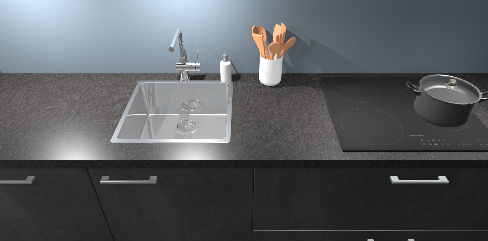 - Uitsparing van kookplaat, spoelbak en kraan dient u zelf te verzorgen.