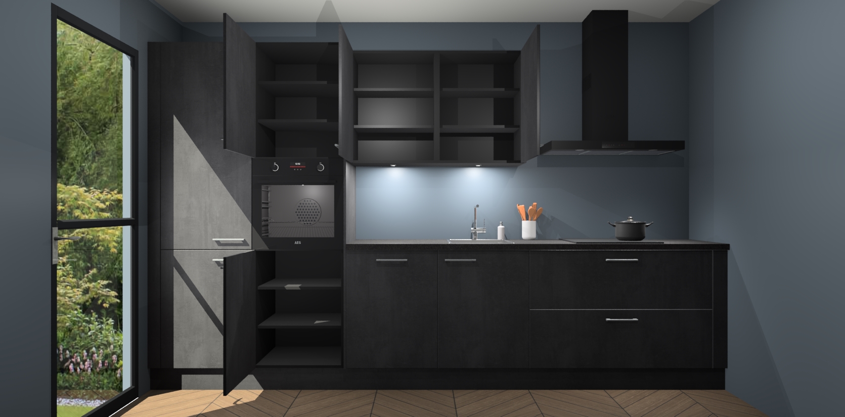 De Beton Zwarte keuken Groenland: waar tijdloze elegantie en robuuste constructie elkaar ontmoeten. Door de combinatie van luxe en veerkracht zal deze keuken u de komende jaren goed van dienst zijn. De prachtige zachte look zorgt voor een tijdloze esthetiek die niet zal slijten met de tijd, waardoor u een decoratieve toevoeging aan uw huis creëert. Onze hoogwaardige kasten zijn gebouwd om lang mee te gaan en is zeer duurzaam en bestand tegen krassen, waardoor het ideaal is voor drukke gezinnen.