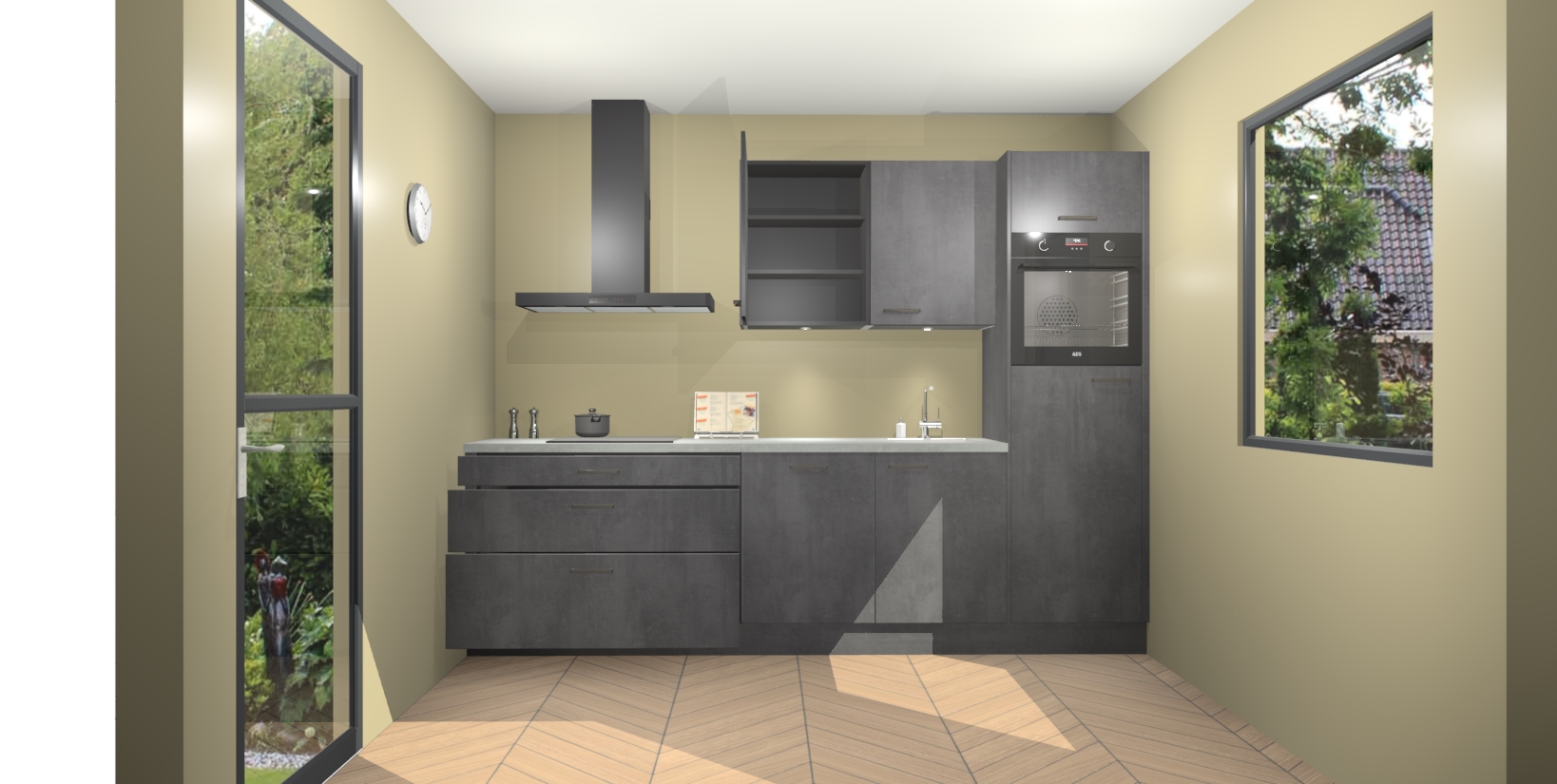 Van de rijke Beton Zwarte afwerking tot de geavanceerde kookfuncties, de Beton Zwarte keuken Havana maakt gegarandeerd indruk voor de komende jaren.