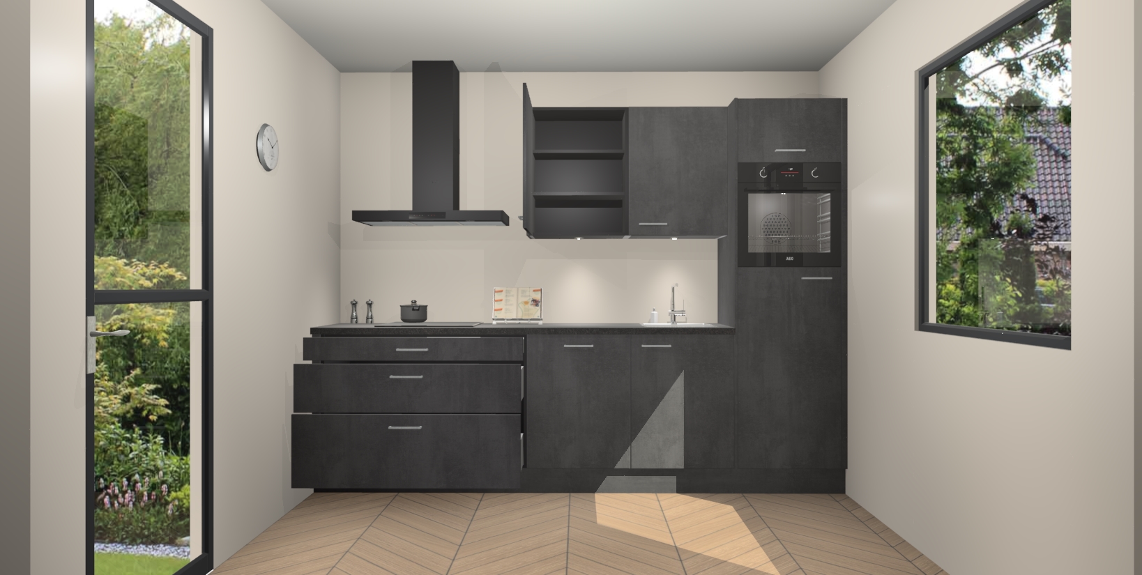 Van de rijke Beton Zwarte afwerking tot de geavanceerde kookfuncties, de Beton Zwarte keuken Havana maakt gegarandeerd indruk voor de komende jaren.