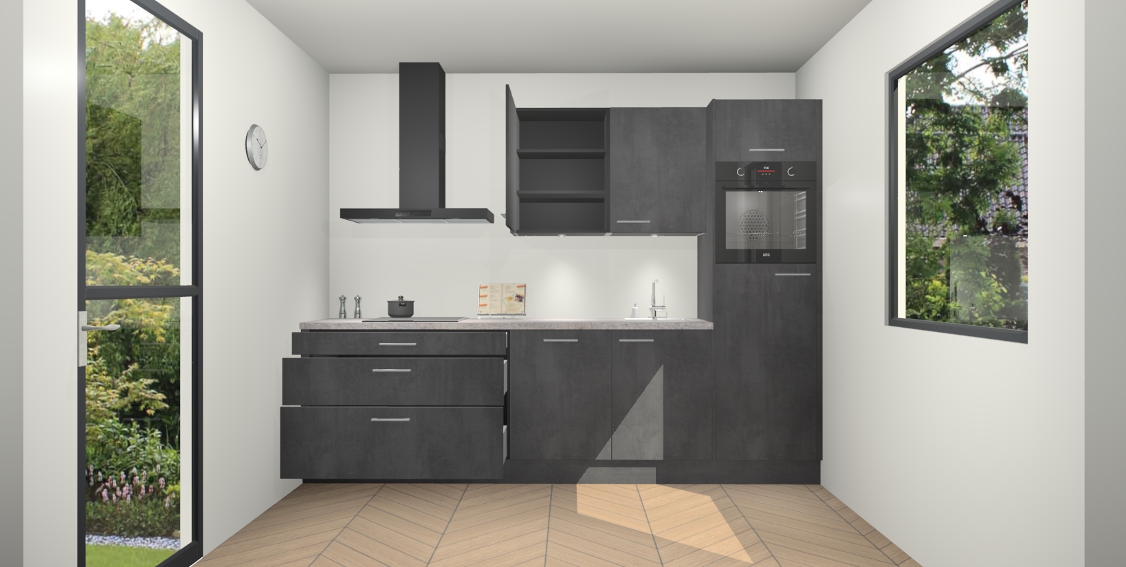 Van de rijke Beton Zwarte afwerking tot de geavanceerde kookfuncties, de Beton Zwarte keuken Havana maakt gegarandeerd indruk voor de komende jaren.