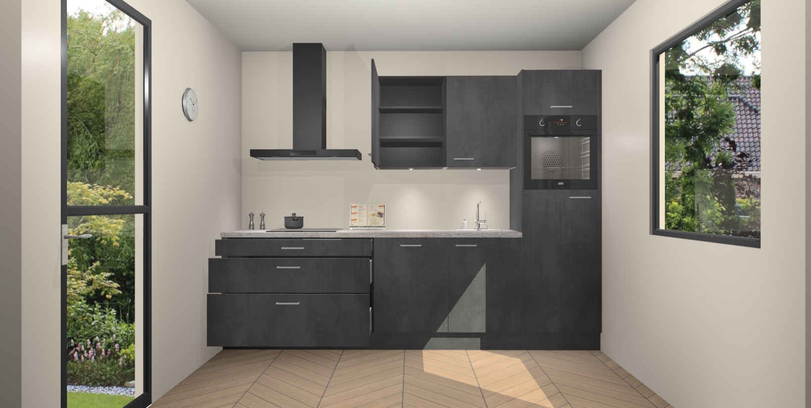Van de rijke Beton Zwarte afwerking tot de geavanceerde kookfuncties, de Beton Zwarte keuken Havana maakt gegarandeerd indruk voor de komende jaren.