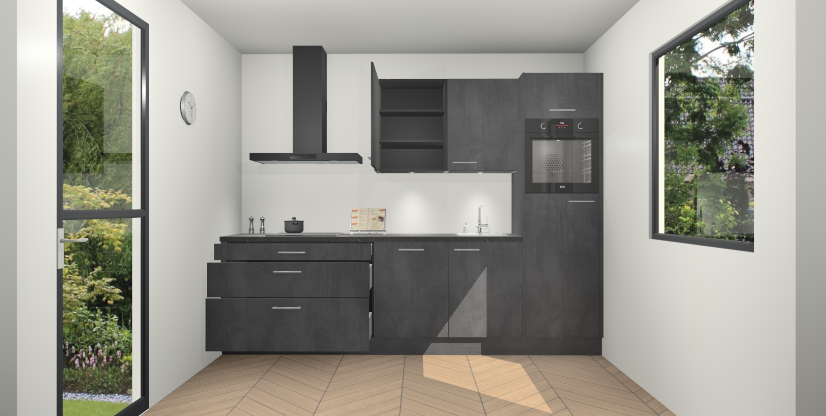 Van de rijke Beton Zwarte afwerking tot de geavanceerde kookfuncties, de Beton Zwarte keuken Havana maakt gegarandeerd indruk voor de komende jaren.