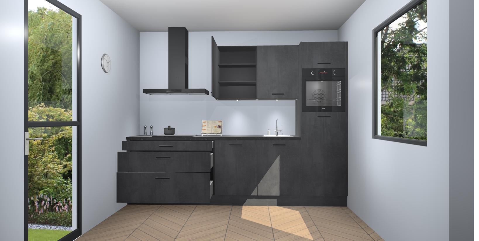 Inclusief plinten, stelpoten en werkblad