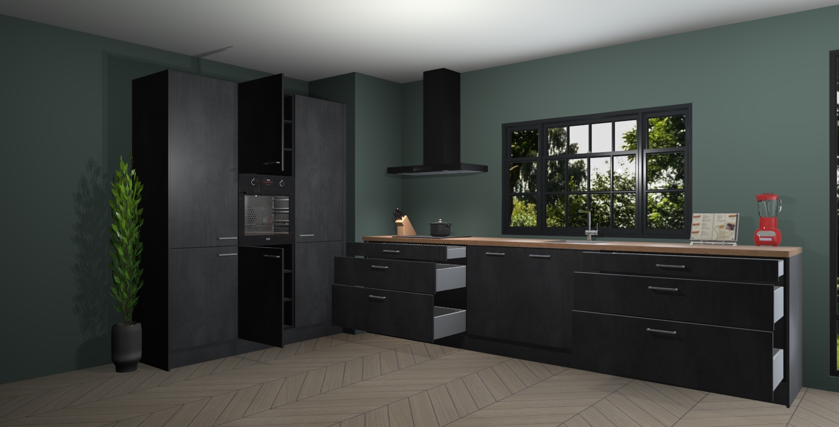 Maak van uw keuken een plek waar u trots op bent - trakteer uzelf vandaag nog op de kwaliteit en elegantie van de Beton zwarte keuken Marseille!