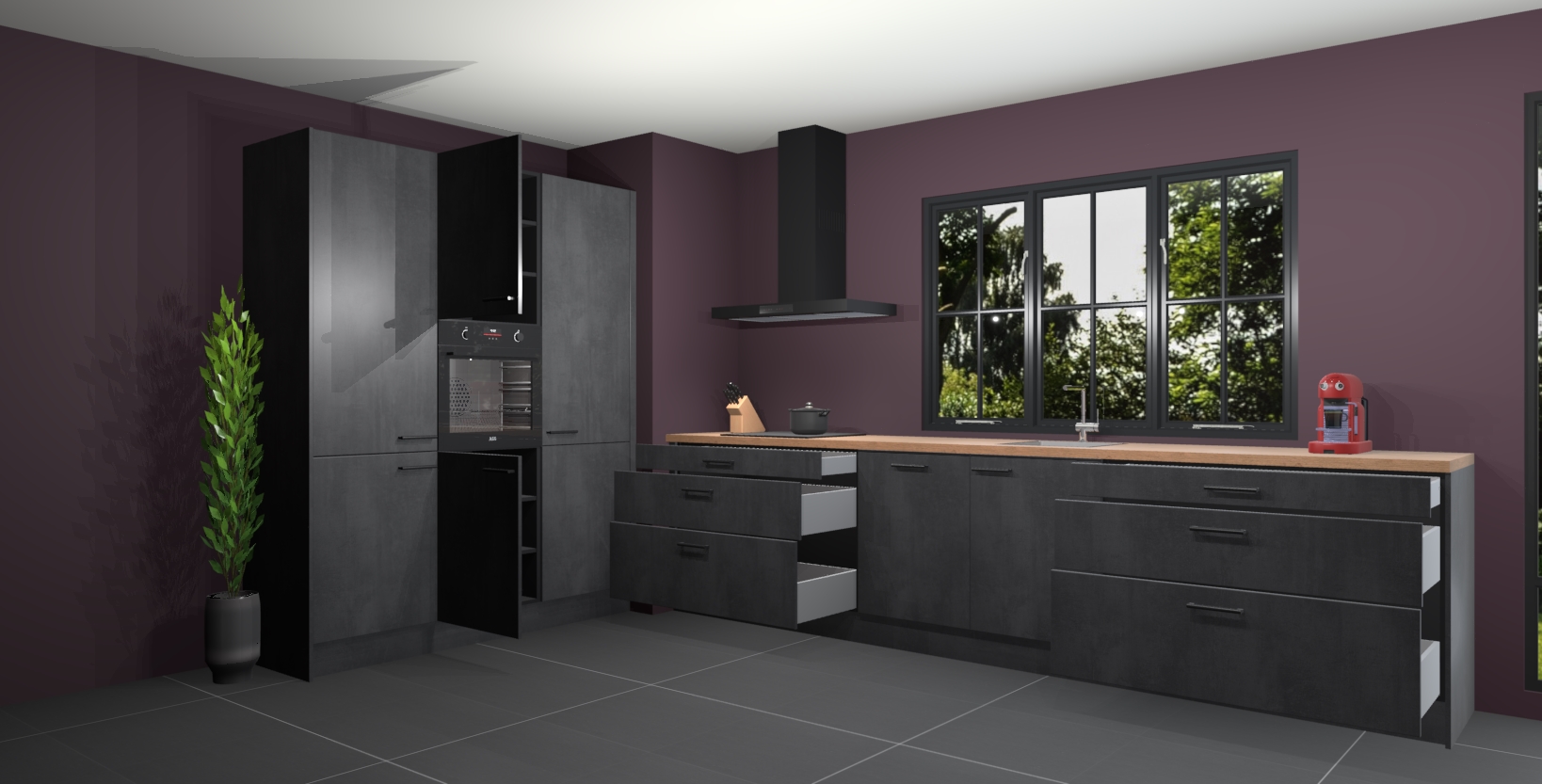 Maak van uw keuken een plek waar u trots op bent - trakteer uzelf vandaag nog op de kwaliteit en elegantie van de Beton zwarte keuken Marseille!